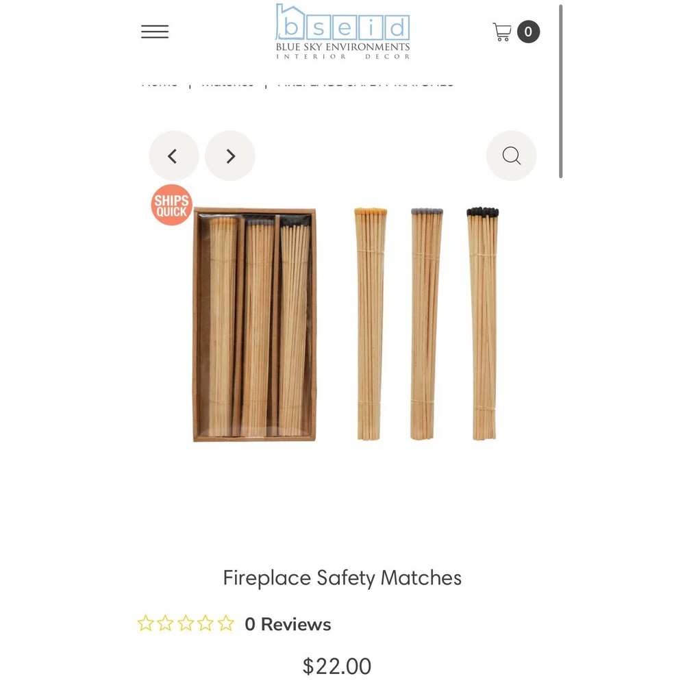 <![CDATA[<div>Have you ever seen a more chic set of matches? These beautiful + colorful long matches come in a box with assorted colors. Always great to have on hand! Pair with our adorable match cloche to complete the look. boxed set paper, poplar wood 150 pieces Retails new for $22 a box BRODRE