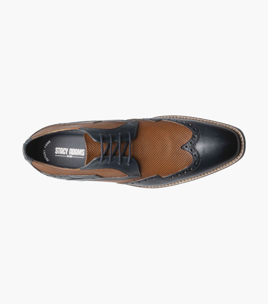 STACY ADAMS JOSS OXFORD LACE UP SNEAKER IN NAVY MULTI SUGGESTED RETAIL: $105.00 Stye: Joss Color: Navy Leather upper Man Made linings for added breathability Durable man-made sole