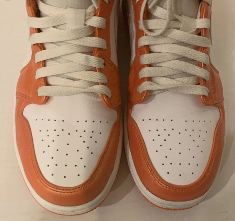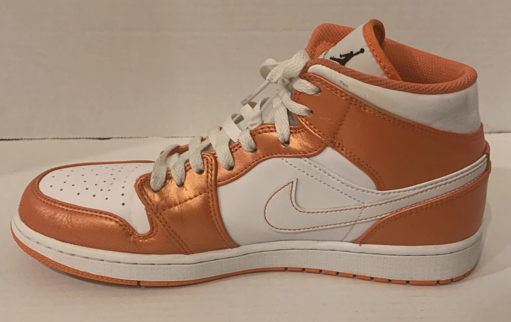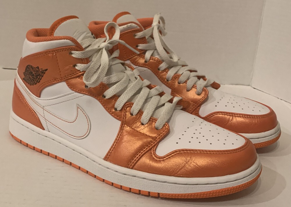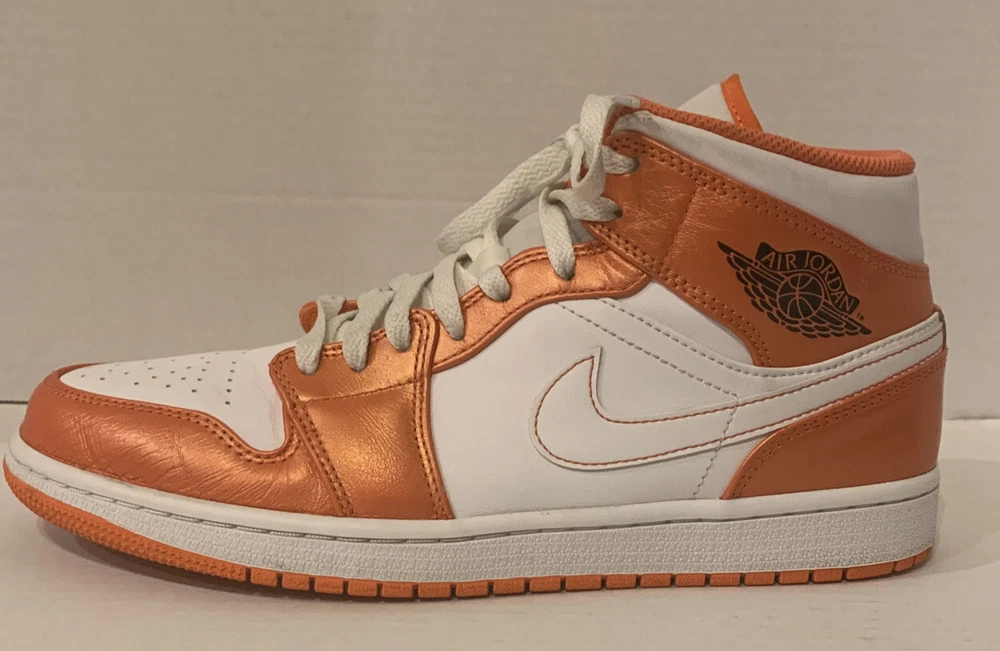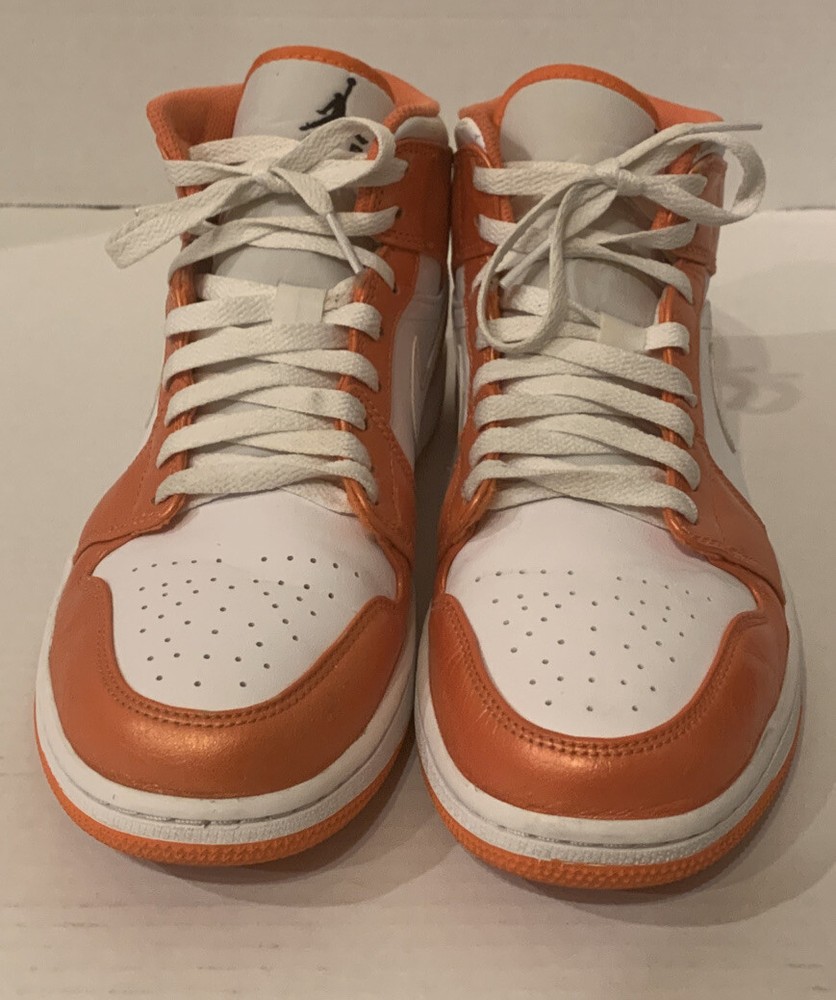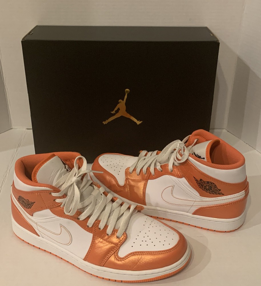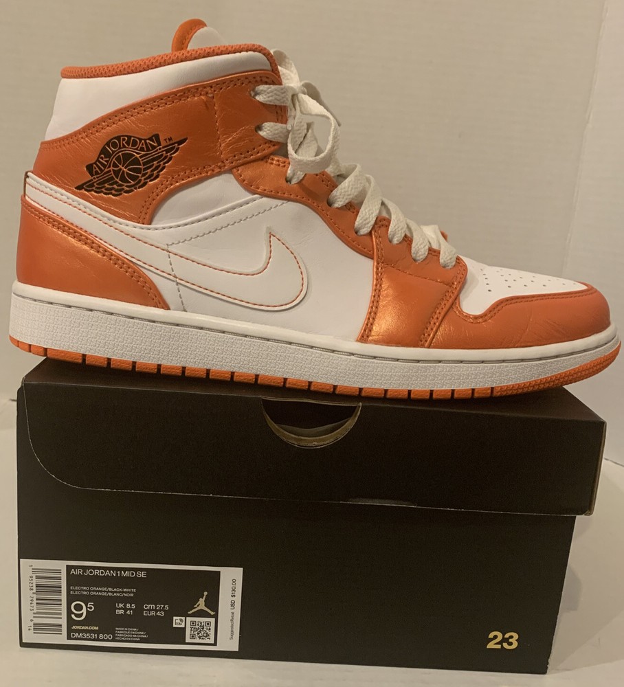 NIKE AIR JORDAN 1 MID SE METALLIC ELECTRO ORANGE/BLK/WHT DM3531-800 MENS 9.5. PRE-OWNED CONDITION DOES HAVE SIGNS OF USE/WEAR INCLUDING BUT NOT LIMITED TO TOE CREASE & SCUFFS. PLEASE SEE ALL PICS PRIOR TO PURCHASING. I HAVE SEVERAL JORDAN RETOS 1’s HIGH, MID AND LOWS THAT MY SON HAS GROWN OUT OF SO FEEL FREE TO LOOK AT MY OTHER LISTINGS. ALL SHOES HAVE BEEN PURCHASED THROUGH NIKE OR FOOTLOCKER AND ARE 100% AUTHENTIC. ITEMS ARE PRICED ACCORDING TO CONDITION. ITEMS ARE SHIPPED WITHIN 48 HOURS OF CLEARED PAYMENT MONDAY-FRIDAY. COMES FROM A PET FREE SMOKE FREE HOME. ITEMS ARE SOLD AS-IS AND NO RETURN OPTION IS AVAILABLE AT THIS TIME. PLEASE SEE ALL PICS AS THIS IS THE VERY BEST WAY TO KNOW EXACTLY WHAT YOU ARE BUYING. ITEMS SHIP USPS PLEASE EXPECT 8-10 DAYS DELIVERY. PLEASE FEEL FREE TO ASK ANY QUESTIONS PRIOR TO PURCHASING.