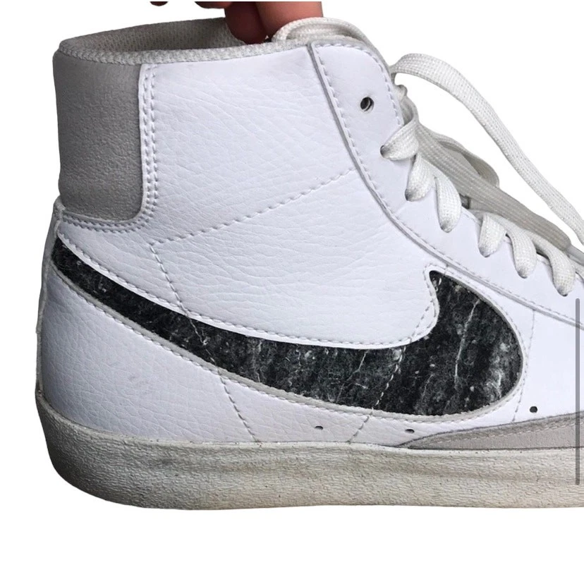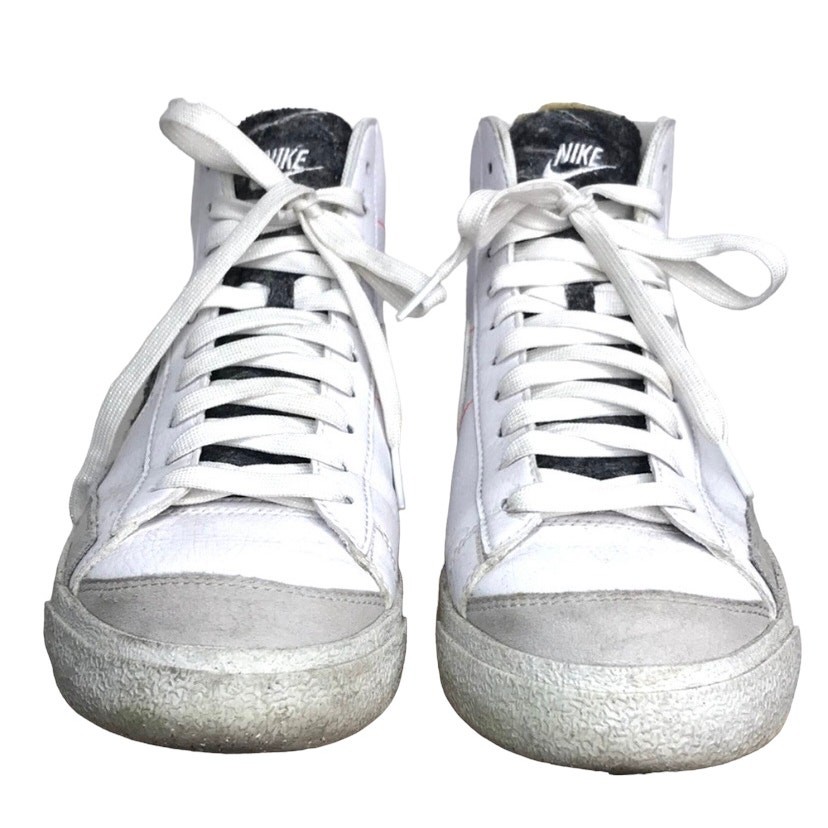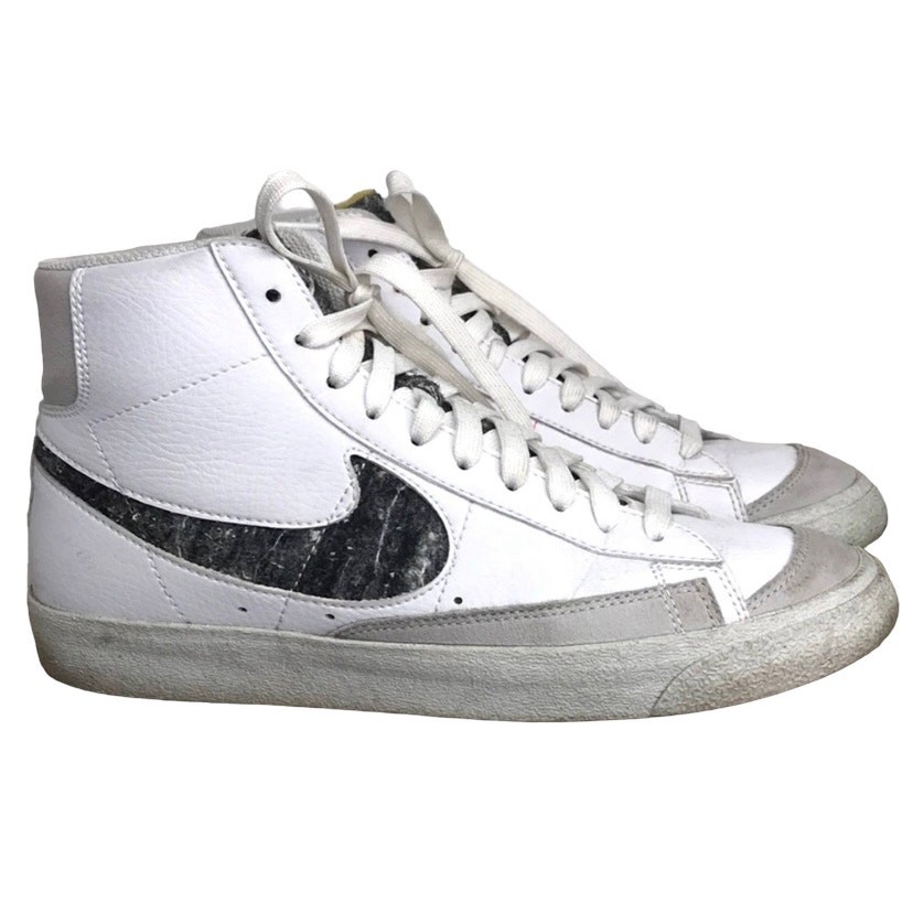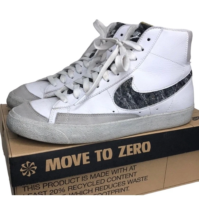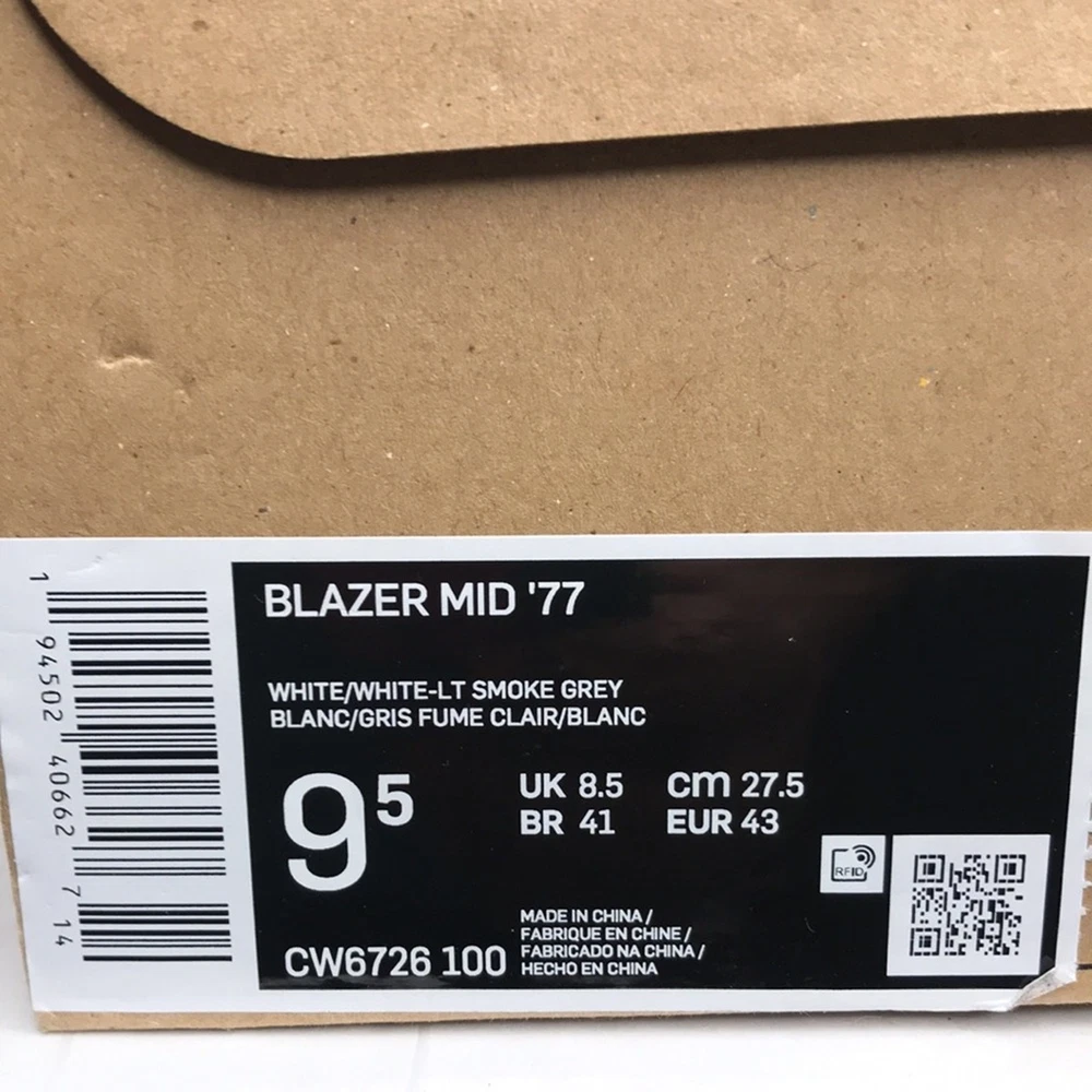 <![CDATA[<div>NIKE BLAZER MID 77β RETRO STYLE MENS SIZE 9.5 IN EXCELLENT CONDITION IN WHITE LEATHER AND GRAY SUEDE MADE WITH AT LEAST 20% RECYCLED CONTENT.