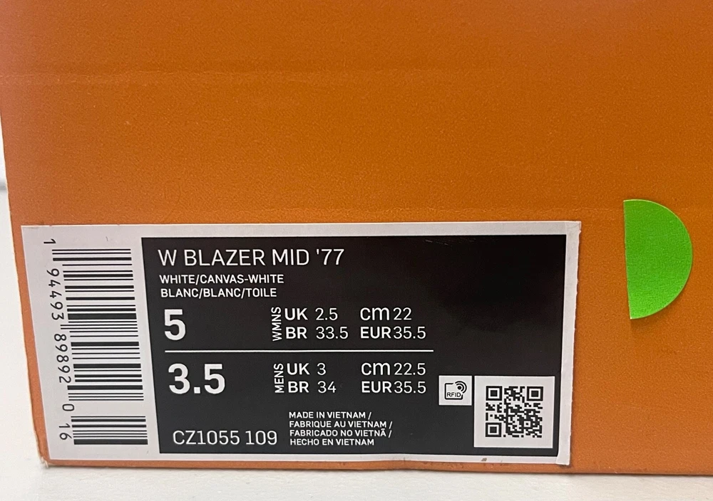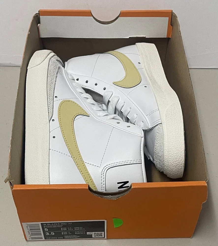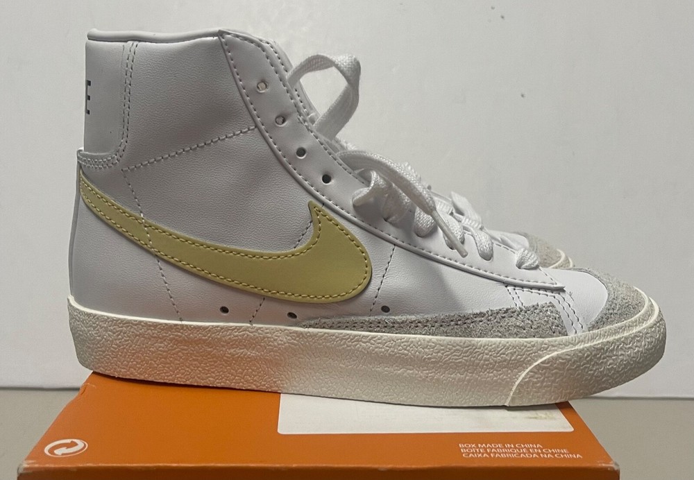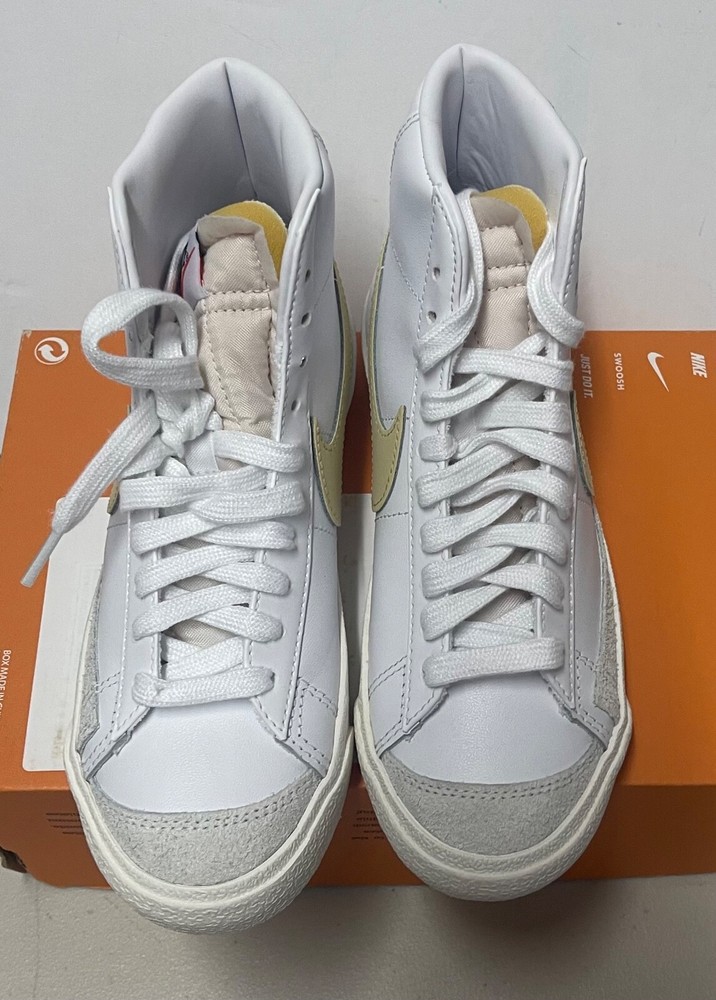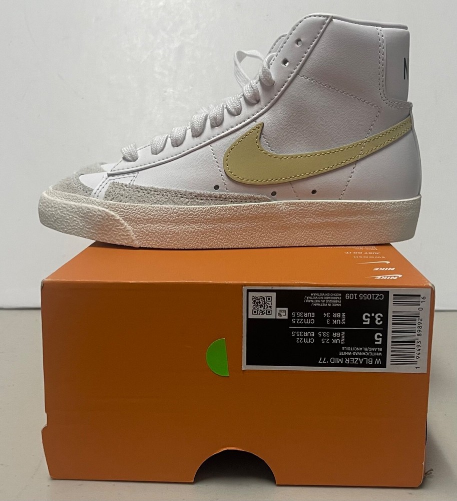 NIKE BLAZER MID 77 WHITE BARLEY VOLT /WHITE CZ1055 108 WOMEN SIZE 5 NEW WITH BOX NO TOP SHIPPED DOUBLE BOXED