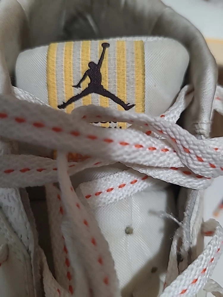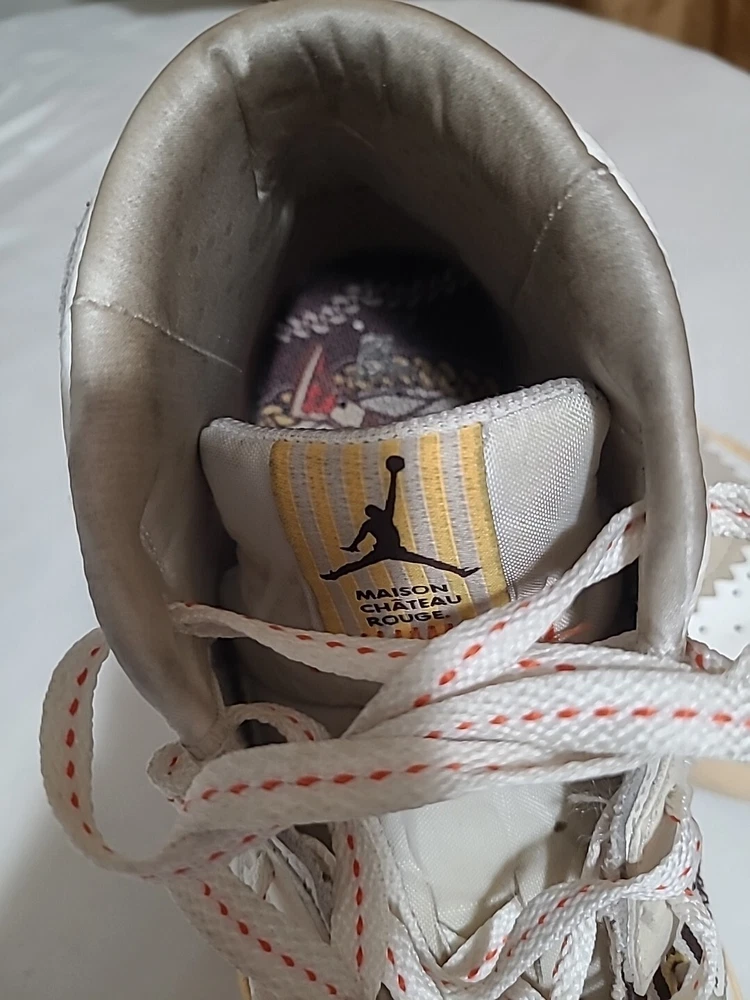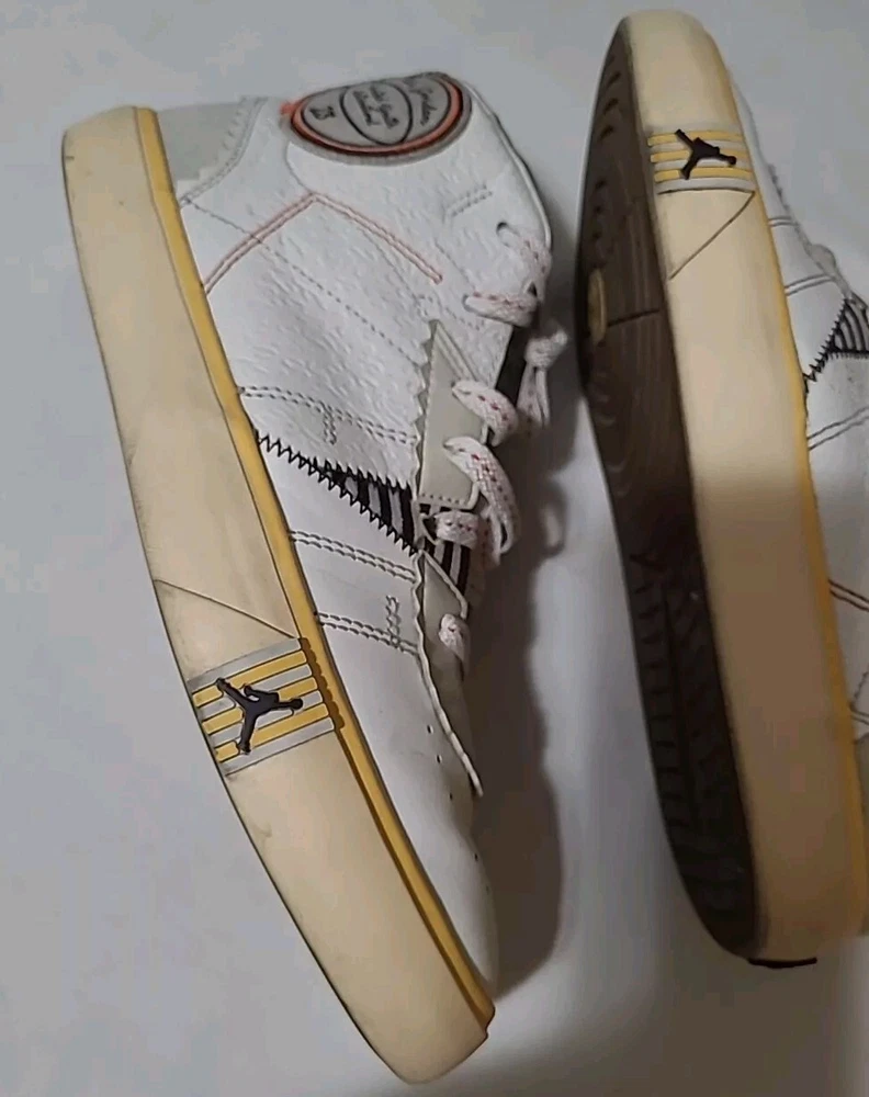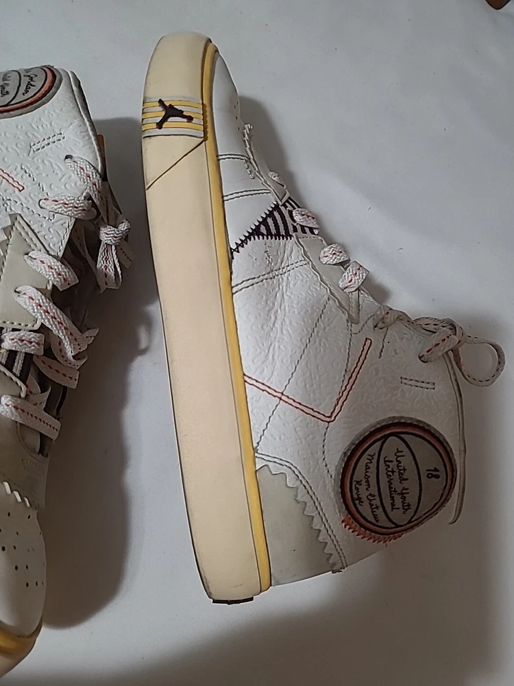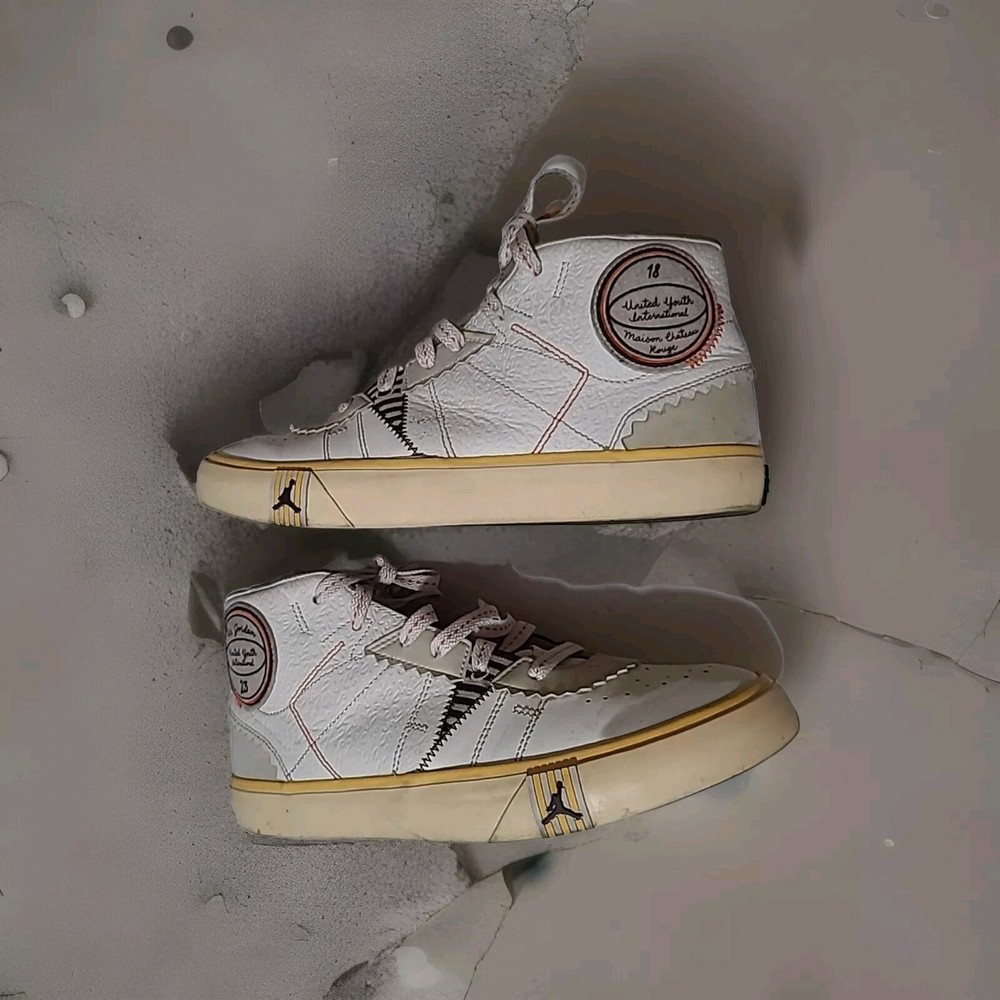 Elevate your sneaker game with these stylish and comfortable Air Jordan Series Mid sneakers. Featuring a lace-up closure, these shoes are perfect for any occasion, whether it's activewear or casual wear. The white synthetic upper material is accented with the iconic Jordan logo, and the brown rubber outsole provides durability for gym and training activities, walking, school, cross-training, CrossFit, basketball, and running. These sneakers have a mid-top shoe shaft style and a comfortable foam insole material. The cushioned and breathable features make them perfect for any season, whether it's winter, summer, fall, or spring. The shoes are customized with the Maison theme and have a solid pattern. They are available in US shoe size 7.5 and UK shoe size 6.5, with an EU shoe size of 40.5. Upgrade your shoe collection with these Jordan Series Mid sneakers, a must-have for any sneakerhead. Shoes are in excellent condition, but they are dirty inside. You can see the photos. they are not scratched free of bad smells, very soft and smooth shoes. for questions, you can contact me via email. I ship on business days. Thank you for supporting my store.