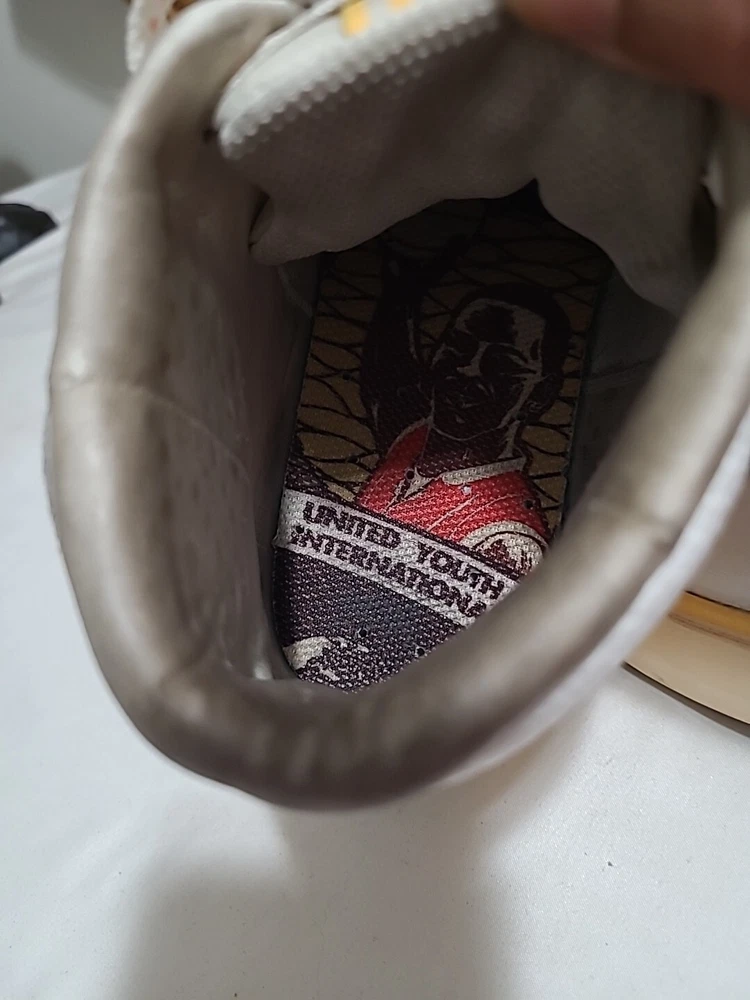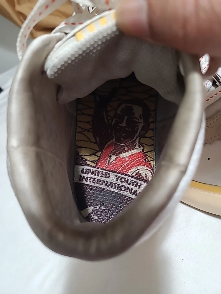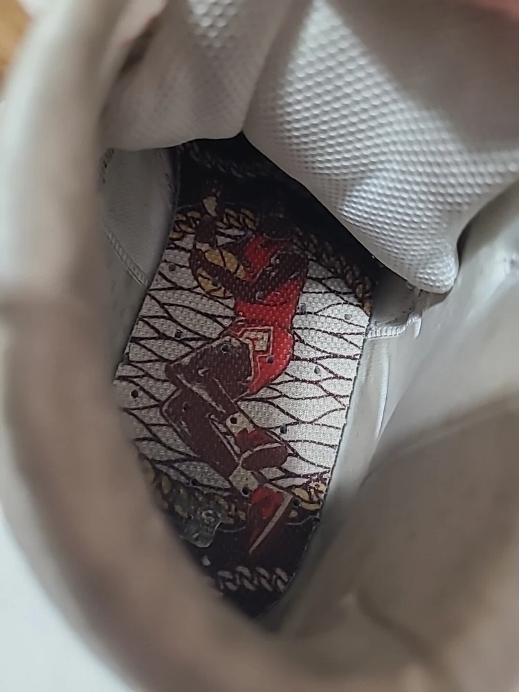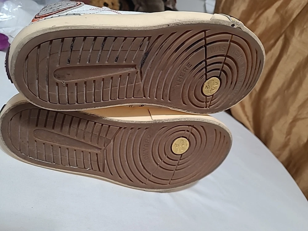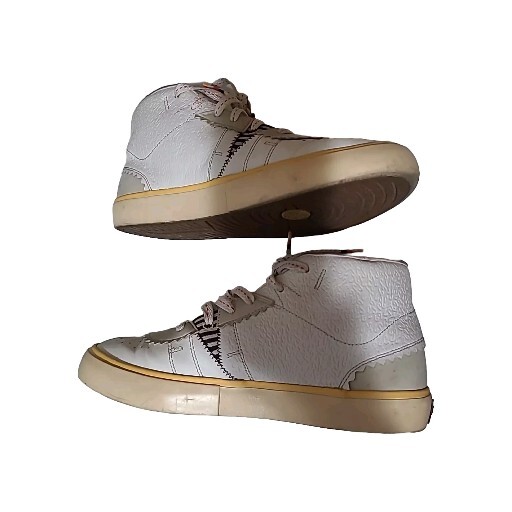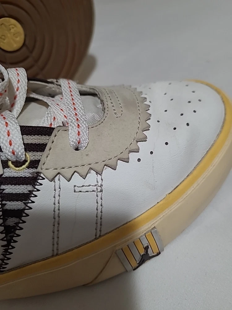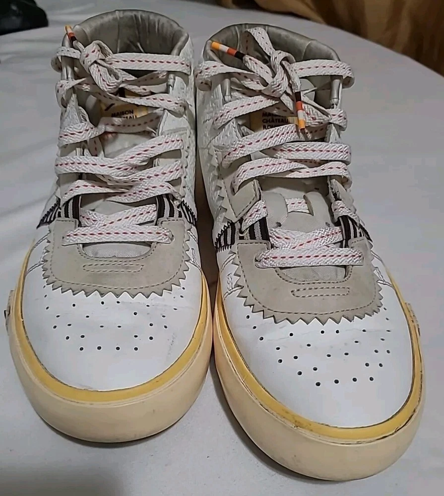 Elevate your sneaker game with these stylish and comfortable Air Jordan Series Mid sneakers. Featuring a lace-up closure, these shoes are perfect for any occasion, whether it's activewear or casual wear. The white synthetic upper material is accented with the iconic Jordan logo, and the brown rubber outsole provides durability for gym and training activities, walking, school, cross-training, CrossFit, basketball, and running. These sneakers have a mid-top shoe shaft style and a comfortable foam insole material. The cushioned and breathable features make them perfect for any season, whether it's winter, summer, fall, or spring. The shoes are customized with the Maison theme and have a solid pattern. They are available in US shoe size 7.5 and UK shoe size 6.5, with an EU shoe size of 40.5. Upgrade your shoe collection with these Jordan Series Mid sneakers, a must-have for any sneakerhead. Shoes are in excellent condition, but they are dirty inside. You can see the photos. they are not scratched free of bad smells, very soft and smooth shoes. for questions, you can contact me via email. I ship on business days. Thank you for supporting my store.