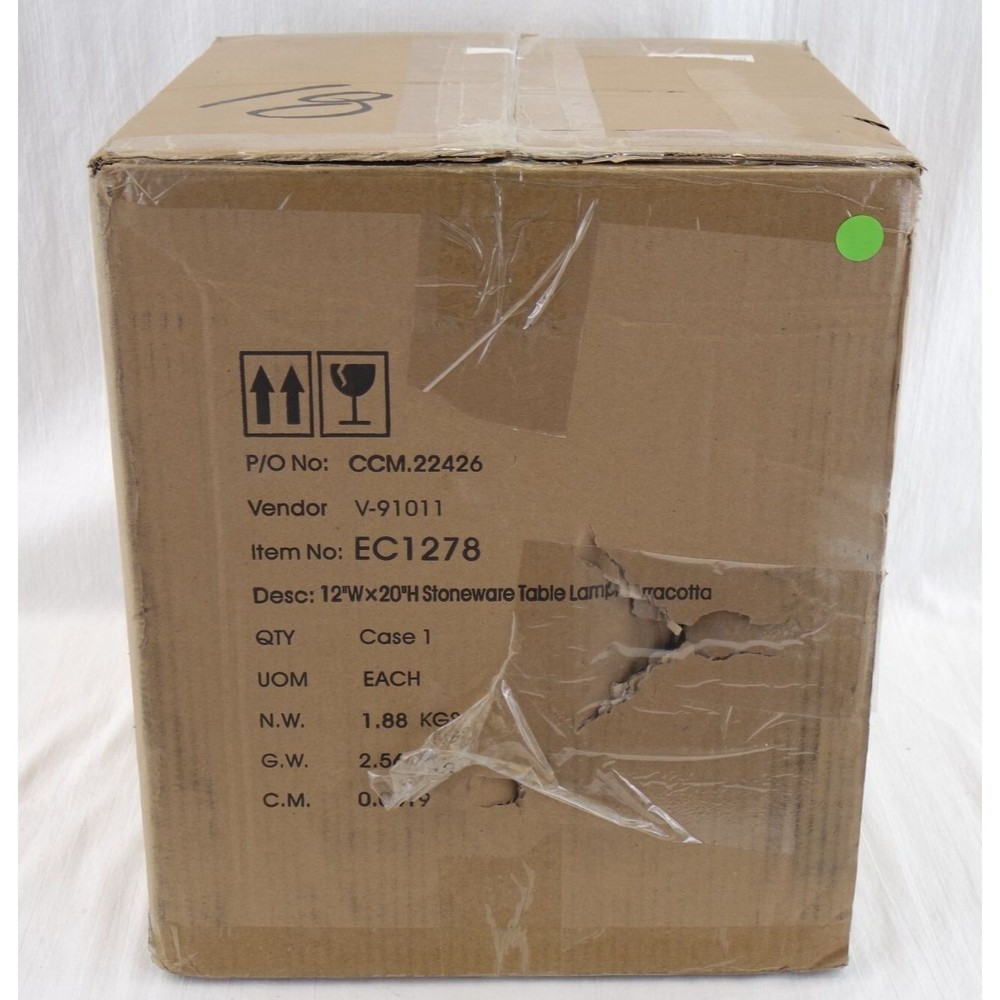 NIOB Creative Co-Op Carved Stoneware Table Lamp This listing is for a Creative Co-Op table lamp. This is model EC1278 in Terracotta with linen drum shade. This item is brand new in an open box. This listing includes the lamp with shade as pictured. About Us We buy and sell items every day and do our best to represent each item as accurately as possible. We put our Excellent and Good Used Condition (EUC/GUC) merchandise through a rigorous process of intake that includes research, testing, measuring, weighing, cleaning, and every step applicable for that specific category of item. New/New in Open Box items (NIB/NIOB) are confirmed to be in their respected stated condition with multiple visual inspections. We work very hard to ensure all our customers are 100% satisfied. Any seller can get positive feedback on a simple transaction, but we take pride in getting positive feedback on the listings that don’t always go smoothly. You can be assured that with over 23 years trading experience on eBay, we can and will do everything in our power to make your experience on par with the best that eBay offers. If you have any questions about the listing, big or small, PLEASE ask before you buy! Offers Yes, we consider all reasonable offers! If there is an offer system available on the platform for this listing, then you can utilize that, otherwise send us a direct message. Offers less than 50% of the listing price will automatically be declined by default. Please avoid messages asking us for our lowest price, we do not begin negotiations at our lowest acceptable amount. Payment and Refunds/Returns Payments are only accepted through this marketplace, we are not able to take payment directly. Completion of payment is expected within 24 hours. Payment not made within 24 hours will result in the transaction being cancelled and the item relisted. Returns are accepted within 30 days of shipment. Please contact us before returning an item; returns received without prior contact to confirm return details may not be accepted. Some returns are subject to a 10% restocking fee. Refunds are given on original purchase price; original shipping is not included. Shipping The buyer is responsible for all shipping unless otherwise noted. We do offer free shipping for some items and that will be clearly noted in the listing (*free shipping is solely inclusive of the continental ((lower 48)) United States*). International shipping is offered directly through this marketplace. We are unable to ship internationally directly to the buyer. Items are typically packed and shipped within 48 hours of payment unless otherwise noted in the Shipping section. Larger items do take longer handling times (including any items requiring freight shipping). If you have a special request for packaging or shipping an item, please contact us *prior* to purchase. Any shipping requests made after a listing has ended cannot be honored. If the item is valued over $500 it will always require a signature for delivery. If you require your address be changed then please ensure this is done during the checkout process; we are unable to make any changes to the shipping address once payment has been completed. We recycle packing materials whenever possible, including boxes (so long as they maintain their structural integrity). This allows us to keep overall costs down, which in turn allows us to offer lower prices to our customers. This is also environmentally responsible and friendly! We take pride in our low item damage rate due to the care we use in packing our parcels. However, we can only do our level best to ensure an item arrives safely, as once it leaves our warehouse it is quite literally out of our hands. If an item does arrive damaged, please contact us immediately and keep all packaging materials. Contact Us Please utilize the eBay messaging system to make contact. If there are ANY questions about an item, they must be asked prior to purchase or making an offer. This includes questions about shipping, item condition, item specifics, what is included in the listing, or any other questions of any kind related to the item or listing. If in doubt, please ask!