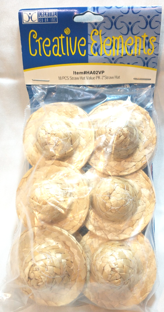 This product is a set of 18 vintage NOS (new old stock) straw hats for dolls and figures, measuring 2" in length and 3/4" in height. The beige color hats come in their original packaging and are part of the Creative Elements product line by Creative Co Op. Inc. These gender-neutral hats are perfect for adding a touch of fashion and beauty to any doll or figure outfit, making them ideal for all occasions and age levels. Made in China in the 1990s, these hats are a unique and stylish addition to any doll clothes and accessories collection. Come visit our store Rocklandcycle for more great listings like this one just double click on the door icon next to our name above. A56