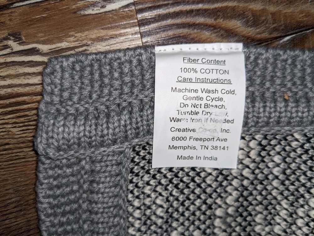 NWOT Creative Co-Op grey cotton knit llama baby infant burp cloth A1