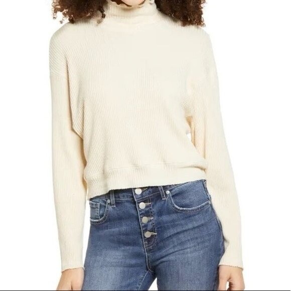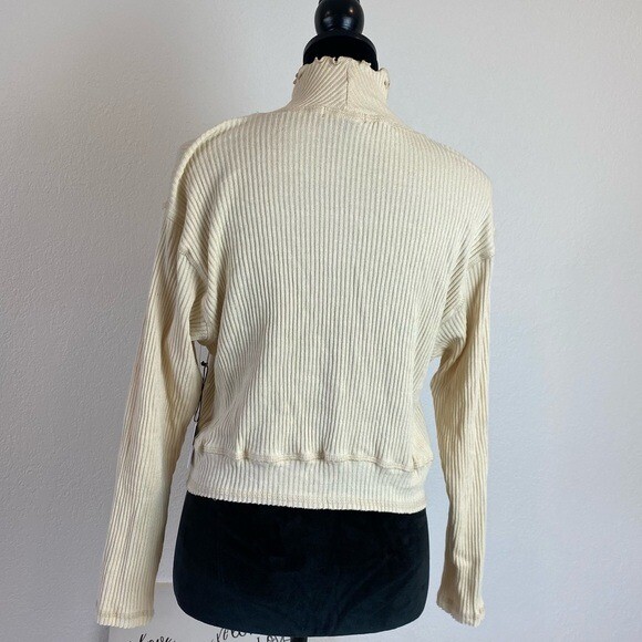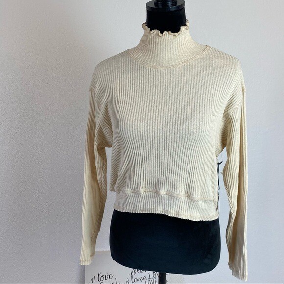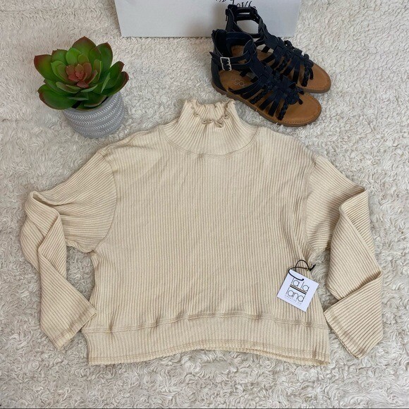 LA LA LAND CREATIVE CO Ribbed Mock Neck Sweater New without tags Size M Color Cream A wide rib brings cozy texture to this relaxed top styled with a mock neck and lettuce trim 65% Cotton 33% Rayon 2% ...