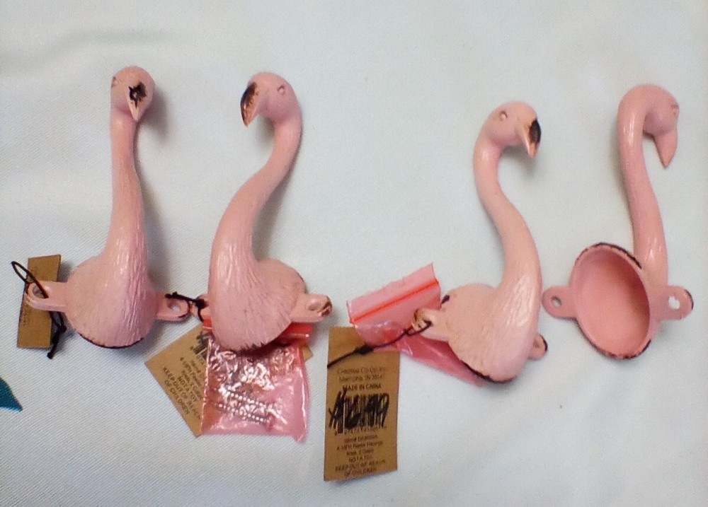 NWT 4- Creative Co-Op Flamingo Metal Wall Hooks Hat Coat - Rustic. 2 of the birds don t have the screws....