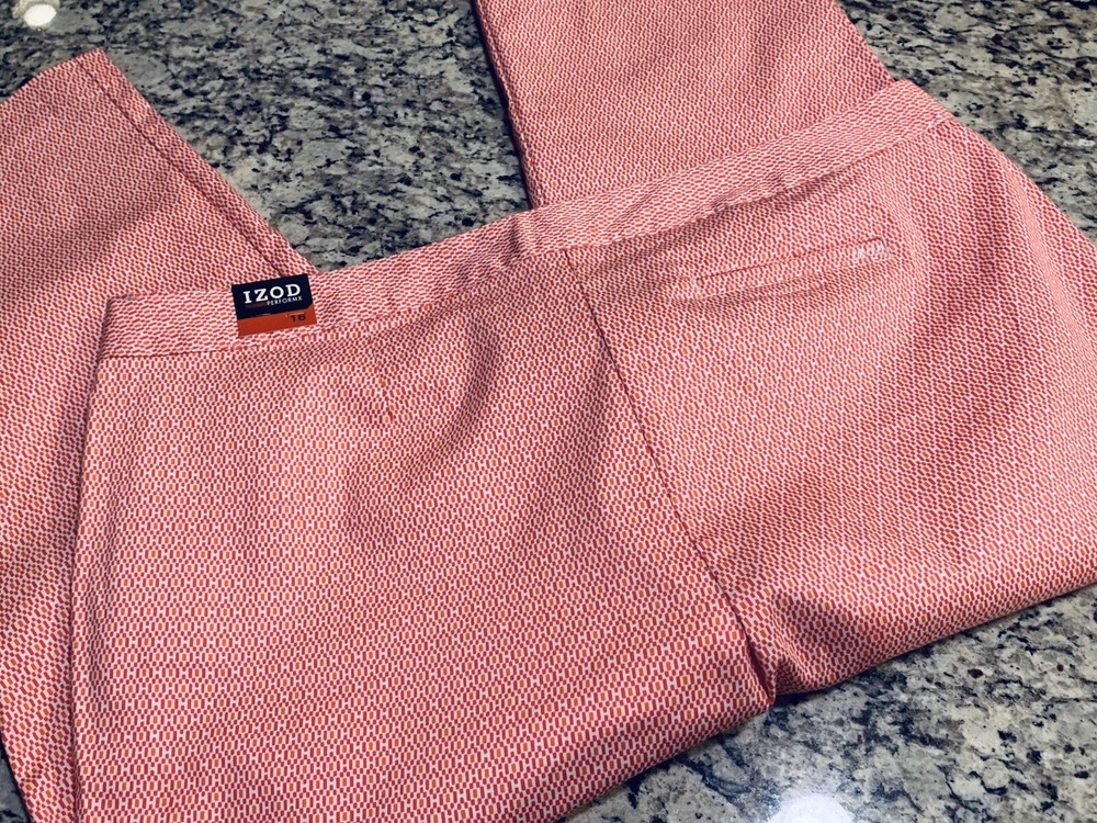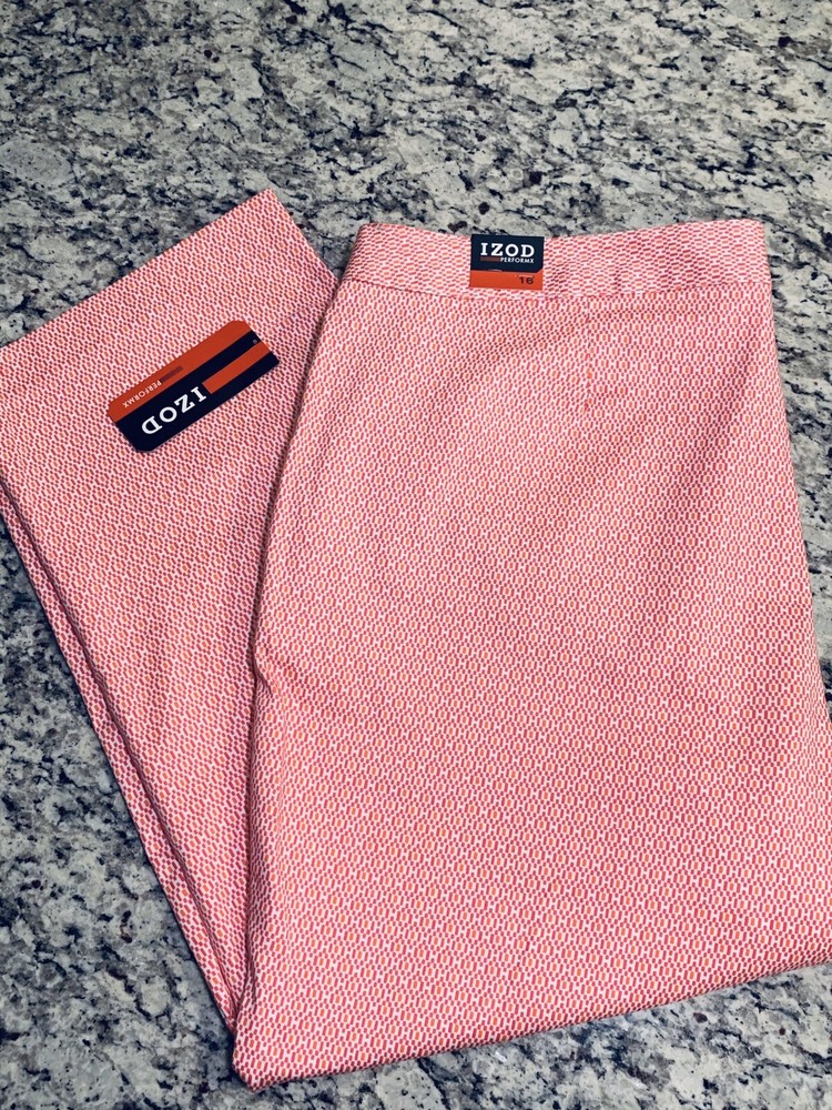 NWT 64$ Izod Light Breathable Capri Geo Pants White Orange Pink Size 16. Condition is New with tags. Shipped with USPS Priority Mail. 34in long 23in hips 19.5in waistline...