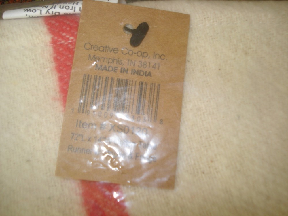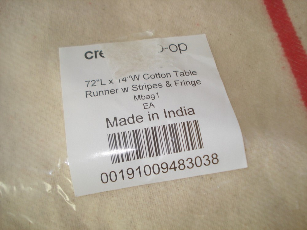 Creative Co-op 1 4" x 72" TABLE RUNNER Cotton w/Red Stripes & Knotted Fringe Made in India New in package.