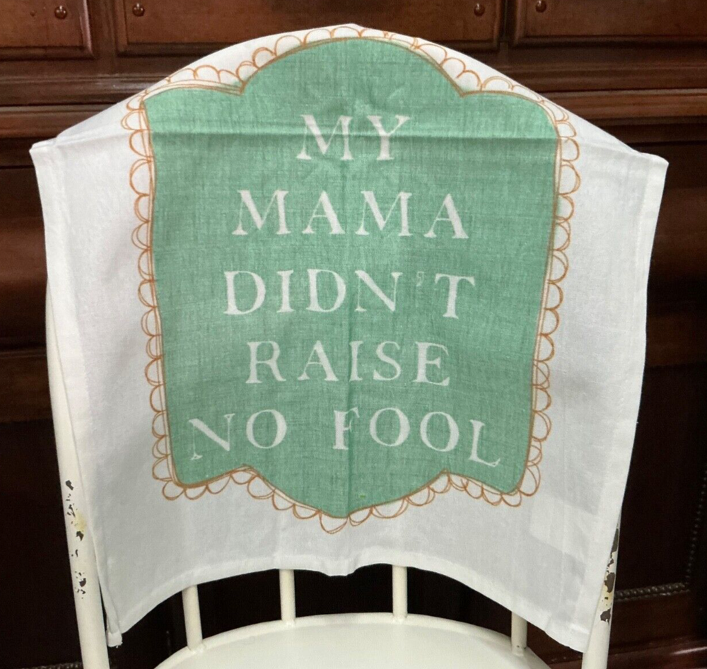 New with tag (NWT) funny, sarcastic hand towel from the Creative Co-Op Kellie Montana Collection. Says - MY MAMA DIDN’T RAISE NO FOOL. Can hang folded traditionally or with the rusty orange cotton hook. Check out my other listings for different sayings if you want more than one! Great housewarming or guest gift. Location A1*