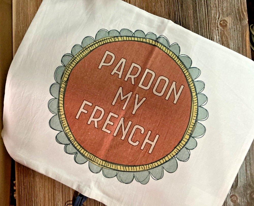 New with tag (NWT) funny, sarcastic hand towel from the Creative Co-Op Kellie Montana Collection. Says - PARDON MY FRENCH. Can hang folded traditionally or with the navy cotton hook. Check out my other listings for different sayings if you want more than one! Great housewarming or guest gift. Location A1*