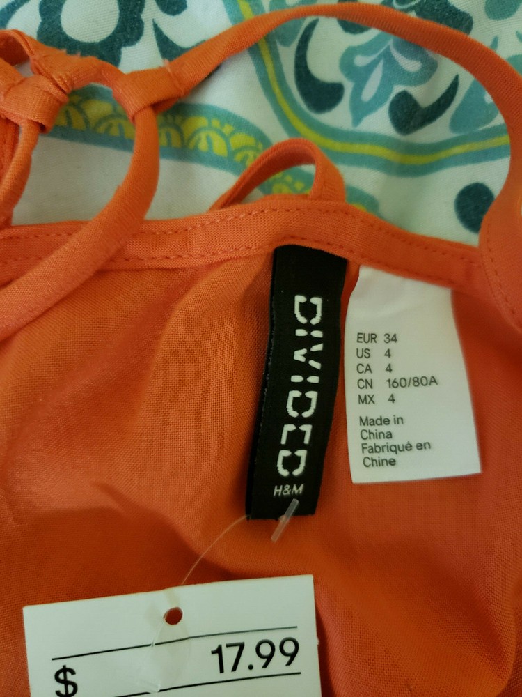 New with tags H&M Orange Dress Never worn, is light and flowy. The dress has a fun triangle design in the back. Can be worn casually or dressed up for an occasion! No flaws, just cleaning out my closet before I move! Measurements flat Length 32" Armpit to armpit 15.5" Waist 12.75" No returns, feel free to ask questions
