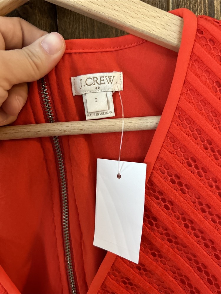 This J.Crew dress in a vibrant orange-red color is a must-have for any stylish woman's wardrobe. The A-line style and knee-length cut make it perfect for a range of occasions, while the sleeveless design allows for easy layering in warmer weather. The dress is available in size 2, with a regular fit suitable for most body types. The dress is made from high-quality materials and is designed to be both comfortable and durable. Its bold color and stylish design make it a great choice for anyone looking to make a statement. Add this J.Crew dress to your collection today and elevate your wardrobe to the next level!