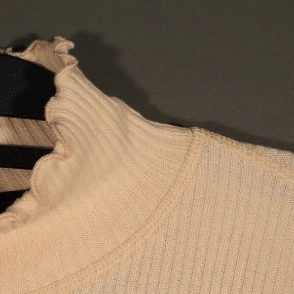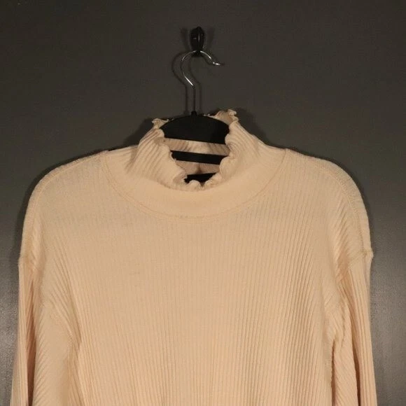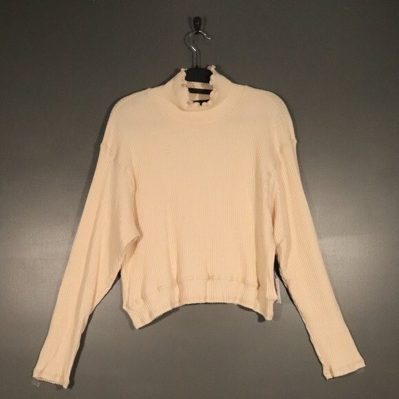 NWT, offers welcomed no trades. Perfect casual long sleeve sweater! Size large. measurements are available upon request, all sales final! A wide rib brings cozy texture to this relaxed top styled with a mock neck and lettuce trim. Style Name: La La Land Creative Co Ribbed Mock Neck. Cream color with a hue of yellow. Beautiful and versatile color for all year round.