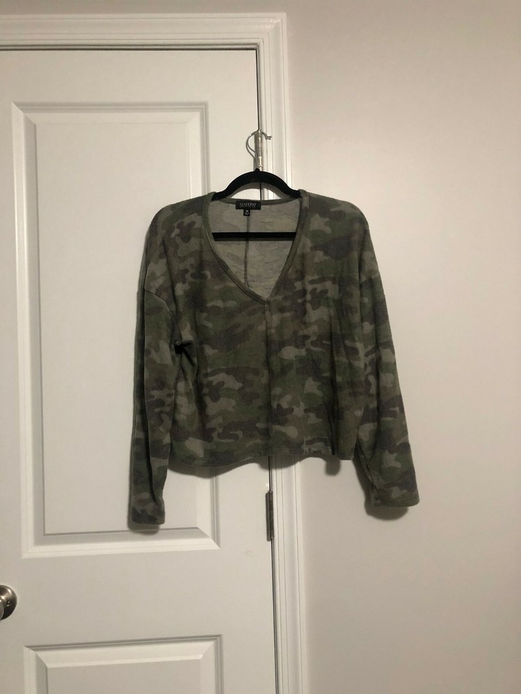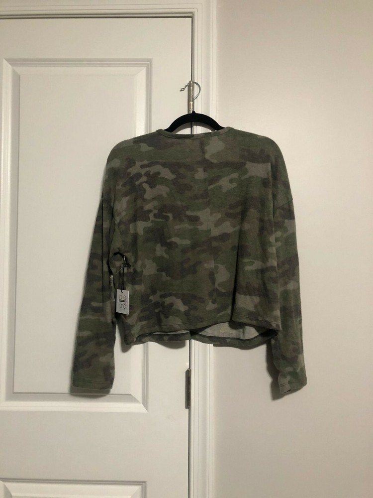 NWT La La Land Creative Co Boxy Camo Long Sleeve Top Size Medium. La La Land Creative Co Boxy Camo Long Sleeve Top Brand new with tags Never worn May show signs of storage 19 1/2" length V-neck Long sleeves 69% polyester, 28% rayon, 3% spandex Machine wash, tumble dry Made in the USA of imported fabric Size Medium Bundle for discounts. Open to offers. Message me with any questions.
