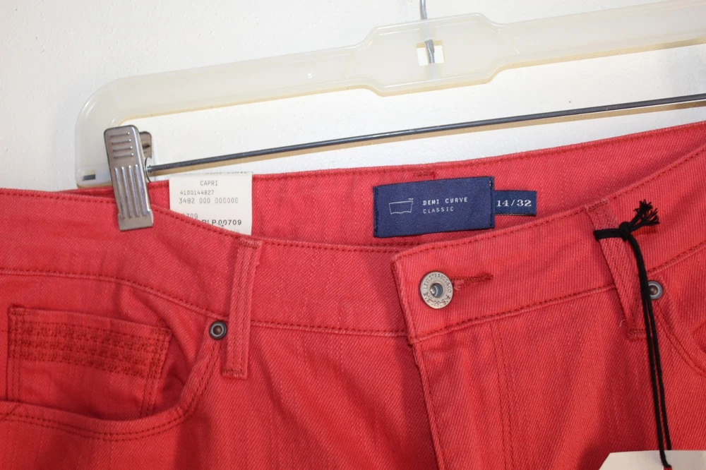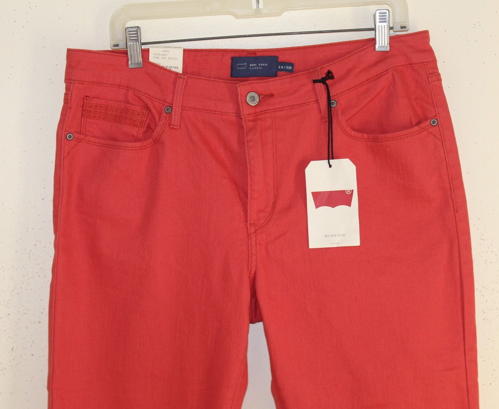 Levi's Curve ID Demi Curve Flattering ...beautiful coral. CAPRI/CROPPED JEAN. , FIVE POCKET STYLE. 99% COTTON, 1% ELASTANE Machine wash cold, inside out, Line dry if possible New with tags attached, from Macy's. Never wore. All tags must be attached if you return. Thanks. MEASUREMENTS: 35 INCH WAIST, 40 INCH HIPS, 32 INCH LENGTH, 21.5 INCH INSEAM, 16 INCHES AROUND BOTTOM OF EACH LEG Inventory code:10-01-18-17-BIN289 from BIN84 Thank you for viewing. A giant thank you to our wonderful customers in the U.S. and Internationally....we've had close to 15 wonderful years on eBay! Please let me know if you have any questions. Check out my other fine ARTsy items. I offer combined shipping , please message me for more information and check out my other times. I also offer discounts to returning customers, message me if you're returning. International customers: eBAY GLOBAL SHIPPING.