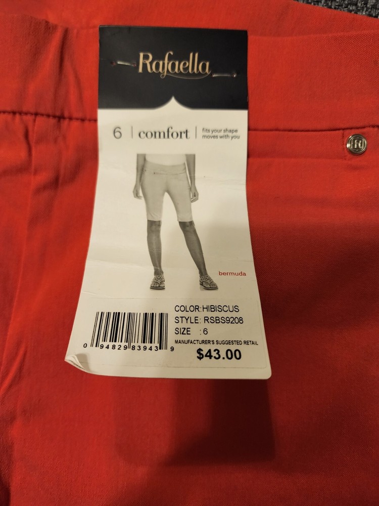 New With Tags.... Rafaella Bermuda Pull On Shorts... Size 6.... Hibiscus (Coral).... Smoke Free... Pet Free Store Environment.... Bonus Gift.......