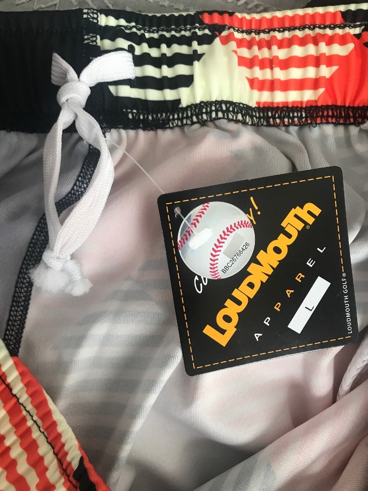 You are bidding on A brand new pair of RARE Loudmouth Golf "MICROWAVE" Shorts in the San Francisco Giants colors. Size Large. Condition is New with tags. Shipped with USPS First Class Package. 11” inseam Internal drawcord 100% Polyester Happy Bidding!