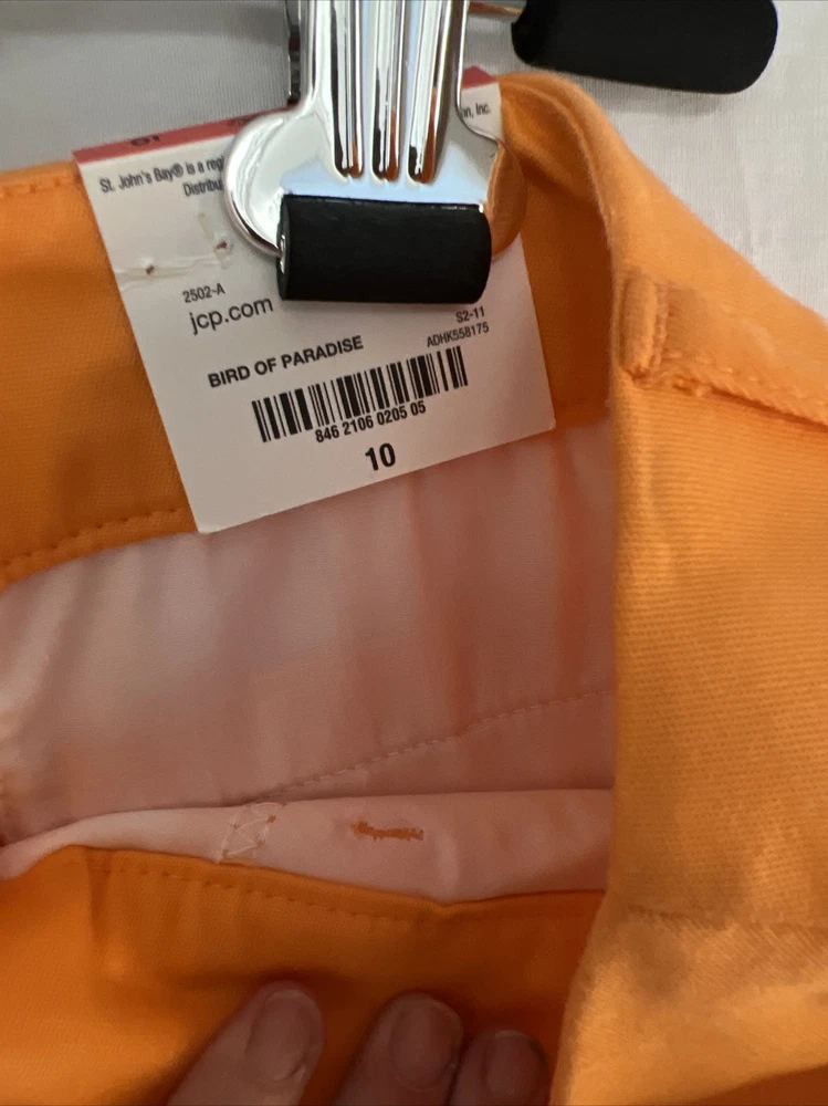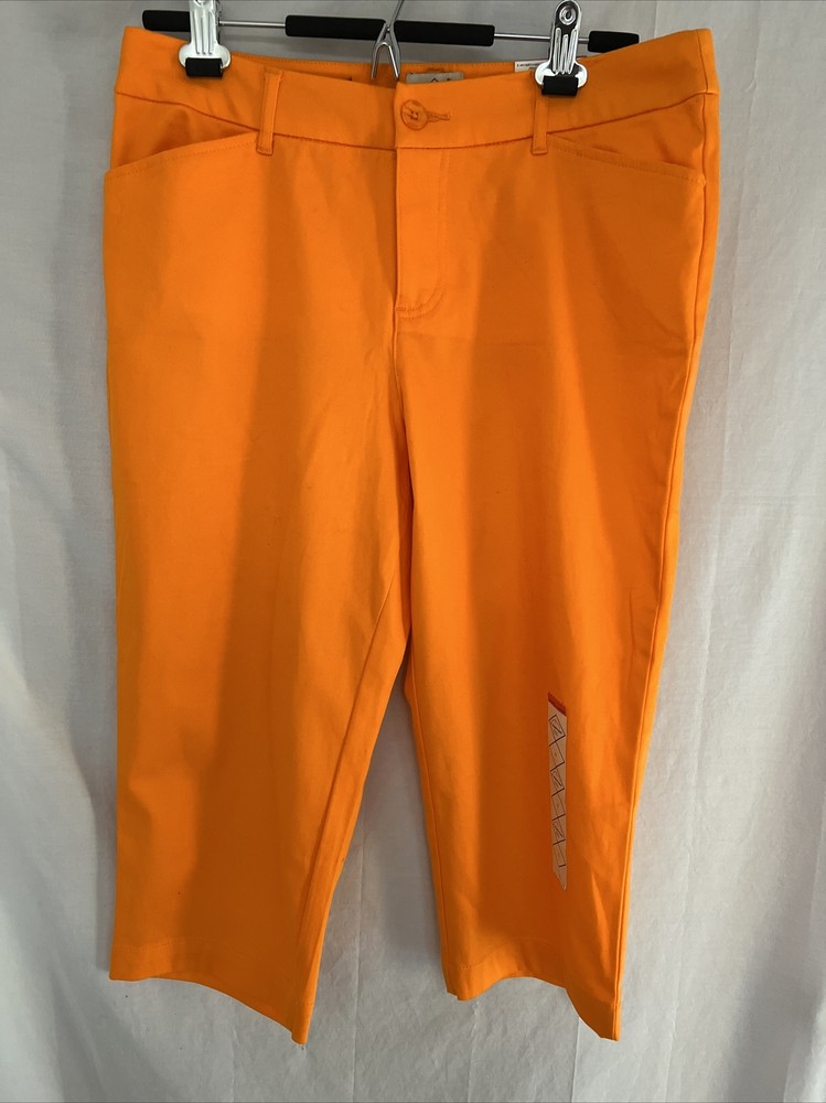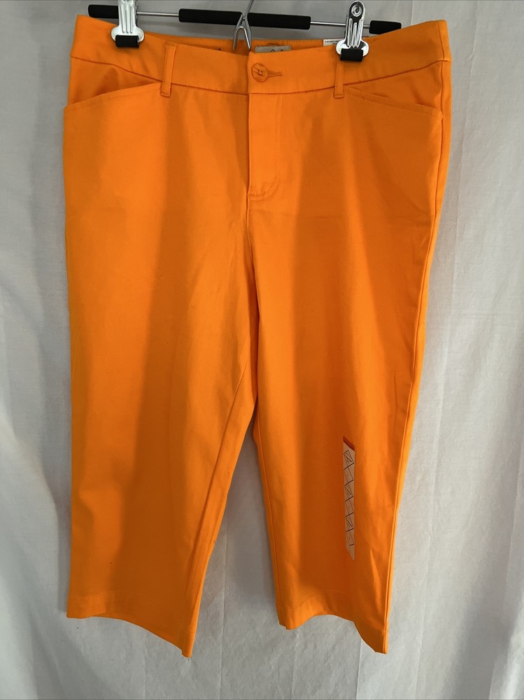 NWT St Johns Bay Capri Pants Secretly Slender Orange -Bird of Paradise Women’s Size 10 RETAIL $36. Waist 33” Inseam 19” Leg opening 8” across