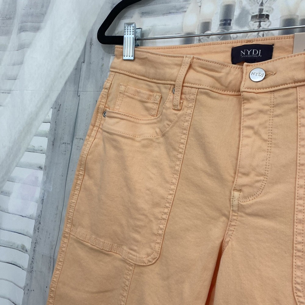 NYDJ Size 8P 8 Petite Melon Orange Crop Capri Denim Jeans Mid Rise 17.5" Inseam Size: 8 Petite New with tags. Measurements were taken with garment lying flat and are approximate: Waist: 15" Rise: 9.5" Inseam: 17.5" Thank you so much for looking and please check out the other items in our store!