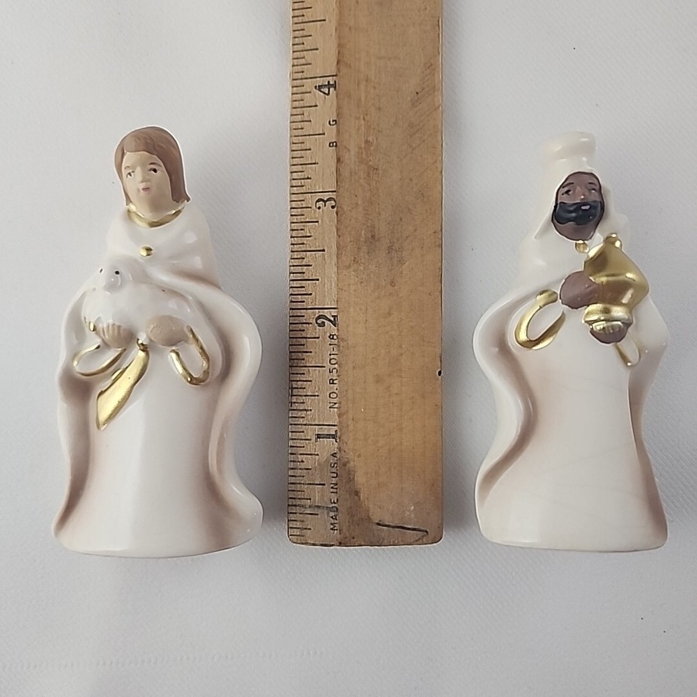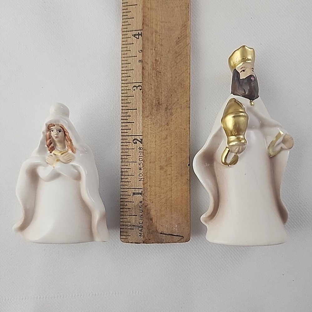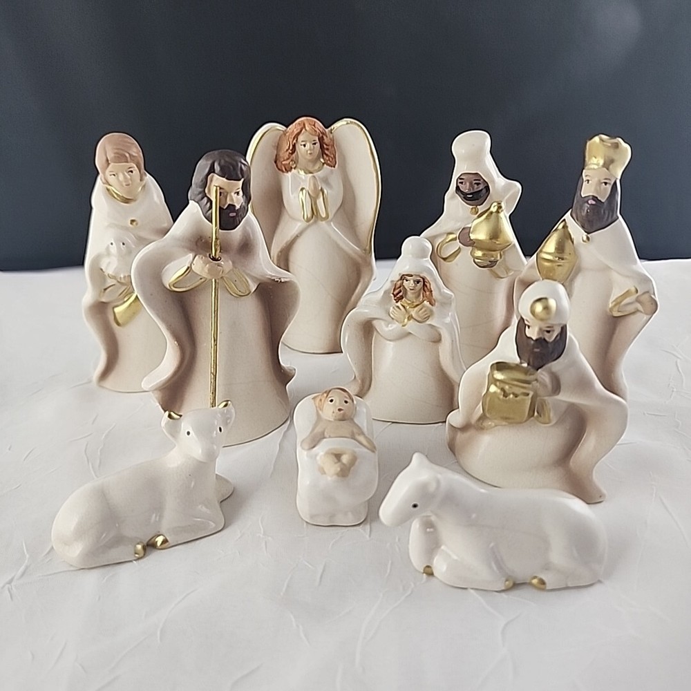 Condition: Very Good Bring the spirit of Christmas to your home with this beautiful set of 10 Nativity Scene Figures from Creative Co-Op. Crafted from high-quality resin, these small yet detailed figures depict the classic Nativity scene, perfect for any holiday decor. The set includes a variety of characters, from the Virgin Mary to the Three Wise Men, all in a stunning white and gold color scheme. Add a touch of religious charm to your Christmas decorations with this set, which is sure to become a treasured addition to your collection. Whether you're displaying them on a mantel or as part of a larger display, these Nativity figures are sure to bring joy and wonder to your home.