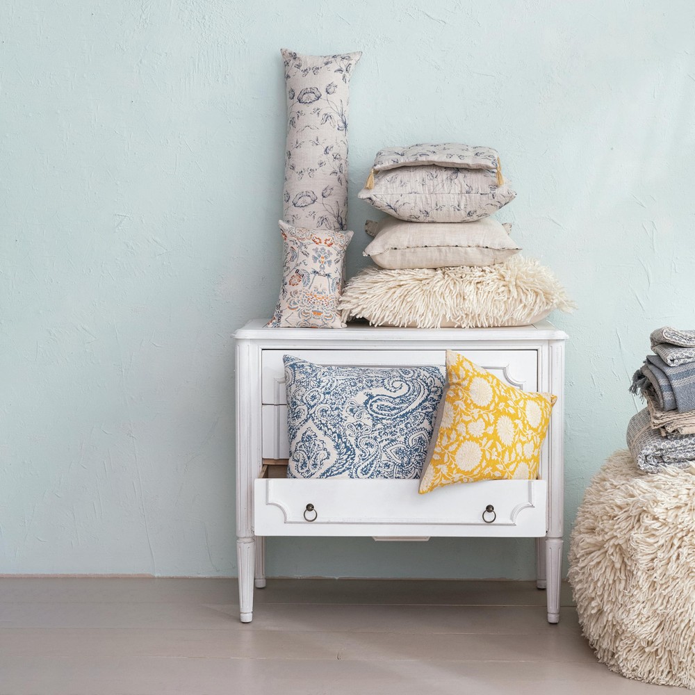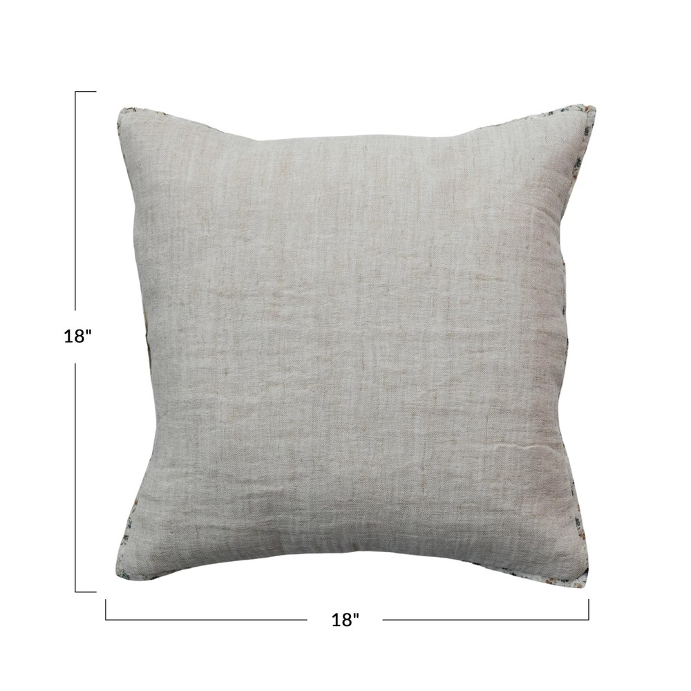 This 18-inch Square Pillow, crafted from a blend of woven cotton and linen, exudes a sense of calm and refinement. The natural color is accented with a subtly patterned edge, making it a versatile piece that complements Scandinavian, farmhouse, or French country decor. The quality materials ensure a soft touch and easy care, while the polyester filling offers ample comfort. Whether it's adorning a couch or dressing up a bed, this pillow is a testament to simple, timeless design. Add a touch of elegance to any room with this stylish and comfortable pillow that effortlessly enhances the overall aesthetic. Its classic design and neutral color make it easy to mix and match with different decor styles for a cohesive look. A natural-hued pillow that brings a serene and organic touch with its woven cotton and linen fabric and patterned edge An ideal choice for those who appreciate the understated elegance of Scandinavian, farmhouse, or French country styles Polyester fill insert included A blend of natural cotton and linen provides a soft, breathable texture that's both durable and chic 18” L x 18” W