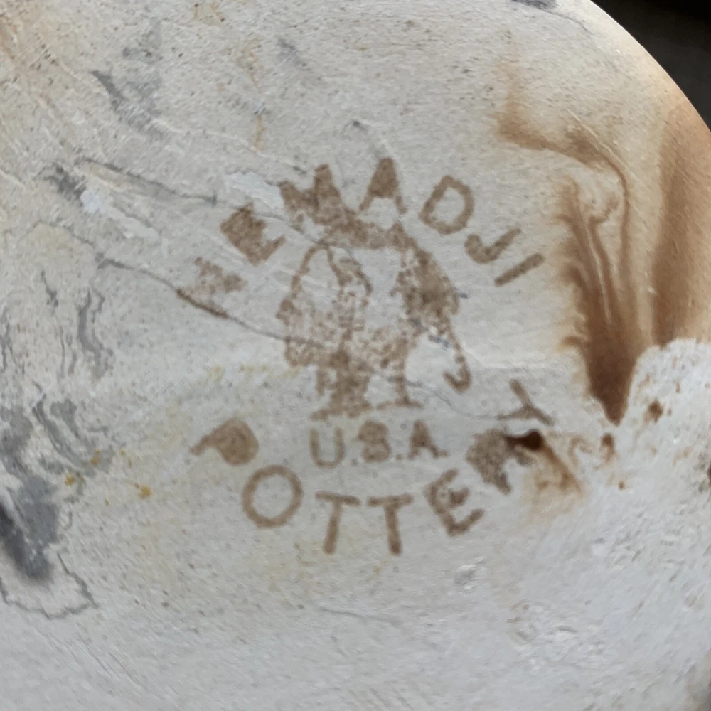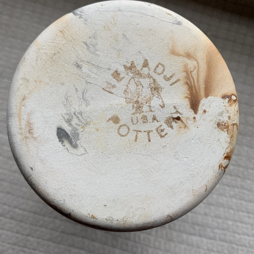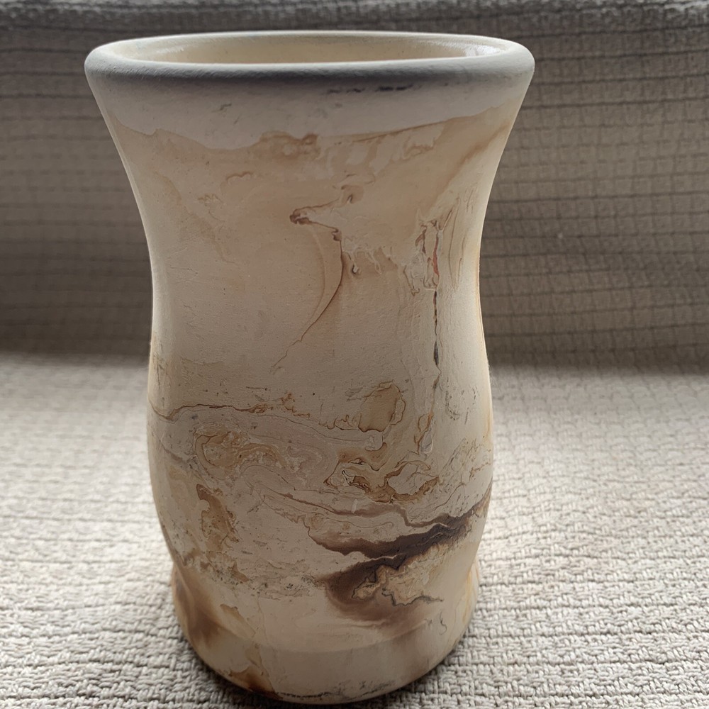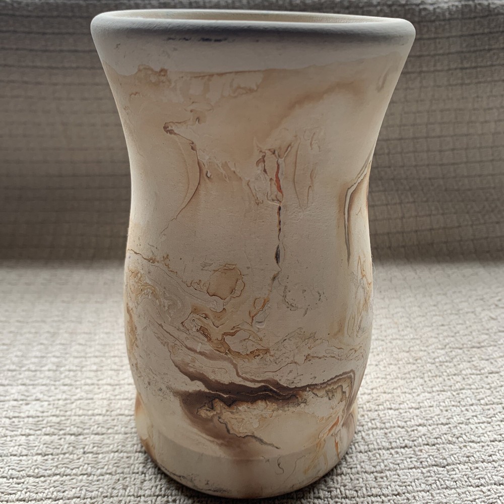 Nemadji Pottery USA 6” Vase beige browns some orange swirls Mid South Western. This is a nice piece of pottery with no cracks or chips. I love how every one of these has its own design. What a beautiful piece of pottery!!! Enjoy!