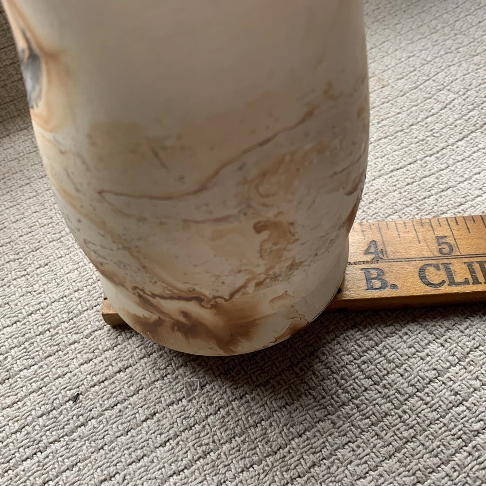 Nemadji Pottery USA 6” Vase beige browns some orange swirls Mid South Western. This is a nice piece of pottery with no cracks or chips. I love how every one of these has its own design. What a beautif...