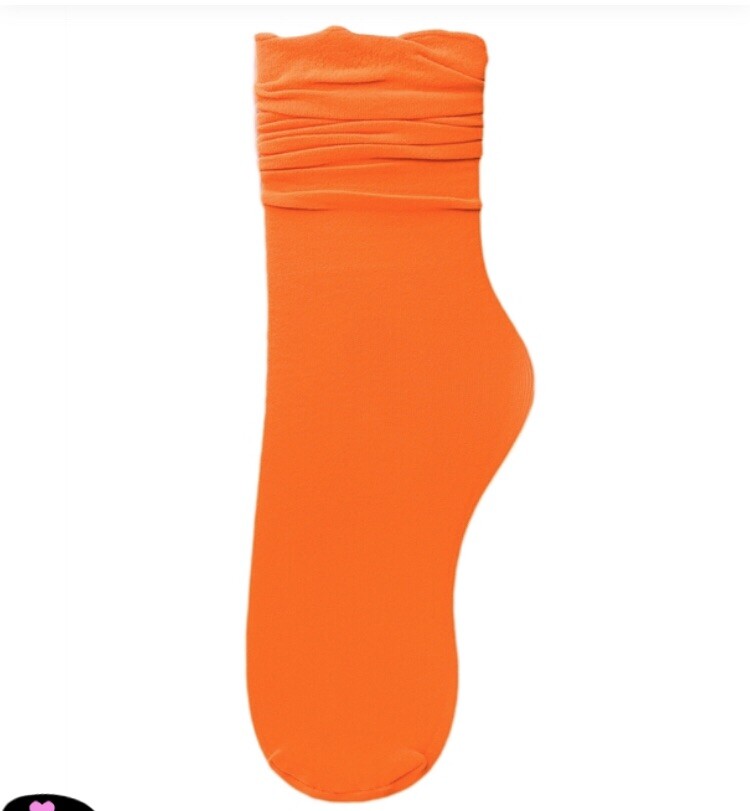 Neon Orange Slouchy 80’s Style Mid Calf Socks New Party Casual yoga mid calf, midi length, sheer, 80’s sock, accessories, neon, very stretchy. Measurements: Length: 16" One Size