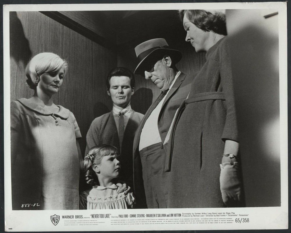 Never Too Late ’65 PAUL FORD MAUREEN O’SULLIVAN CHILDSTAR ELEVATOR This vintage original still shows a VERY RARE photo of PAUL FORD (with SUNGLASSES, second from the right) and MAUREEN O’SULLIVAN (on the right) in an elevator with three people, including a CHILDSTAR. Moviephoto from the movie: Never Too Late Year of the photo: 1965 Size of the photo: Approximately 8 x 10 Other members of the cast (not necessarily in the movie still): Jane Wyatt Jim Hutton Connie Stevens Carmen Fara Lloyd Nolan Henry Jones Pamelyn Ferdin Sandra Gregg Ted Blair . Powered by eBay Turbo Lister The free listing tool. List your items fast and easy and manage your active items.