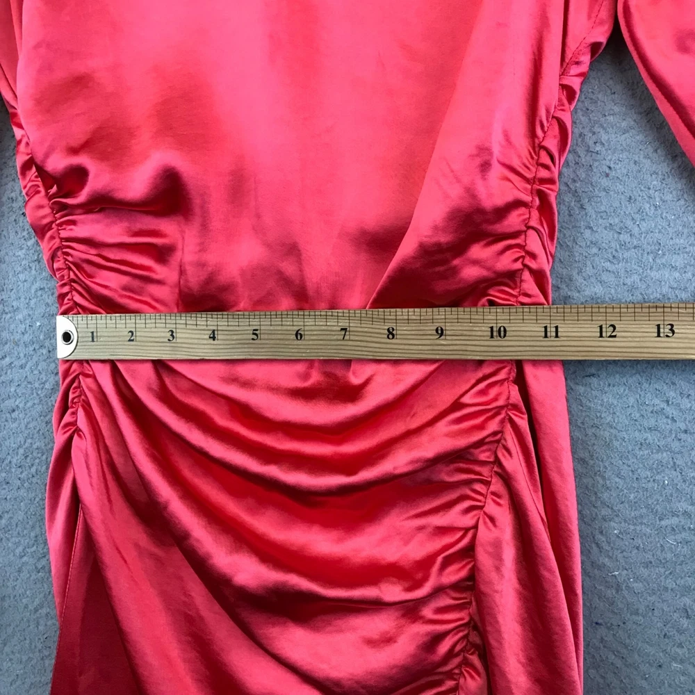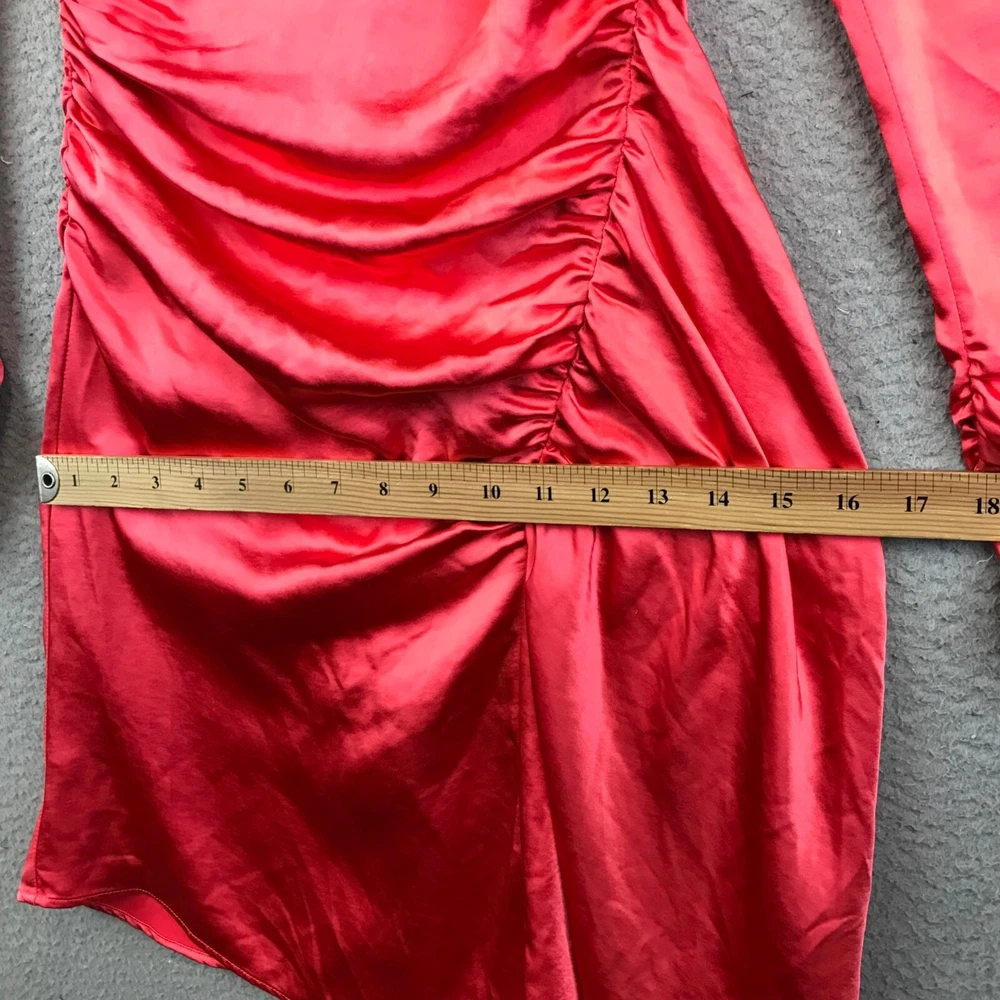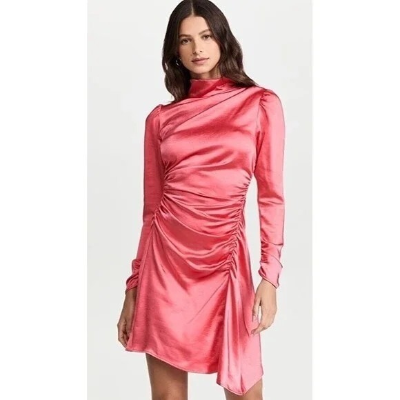 New A.L.C JOSS Long Sleeve Asymmetrical Ruched Dress in Melon Women's Size 0 Condition ~The dress is new with tag attached. From nonsmoking environment. No stains, snags, pilling, odors, or excessive signs of wear unless specifically noted. Please see the photo for measurements. Shipping: Fast Shipping. All items will be shipped within 1 business day of payment (which excludes Weekend and holidays).