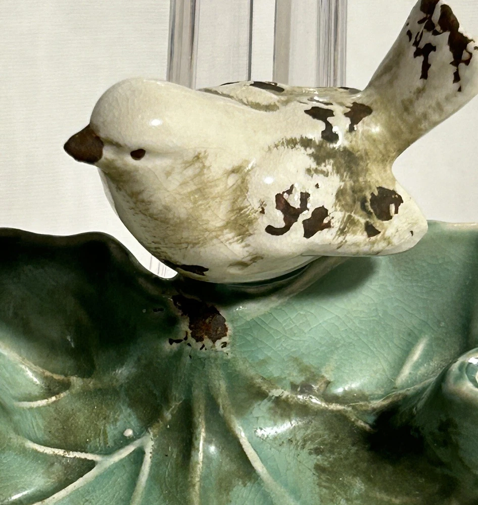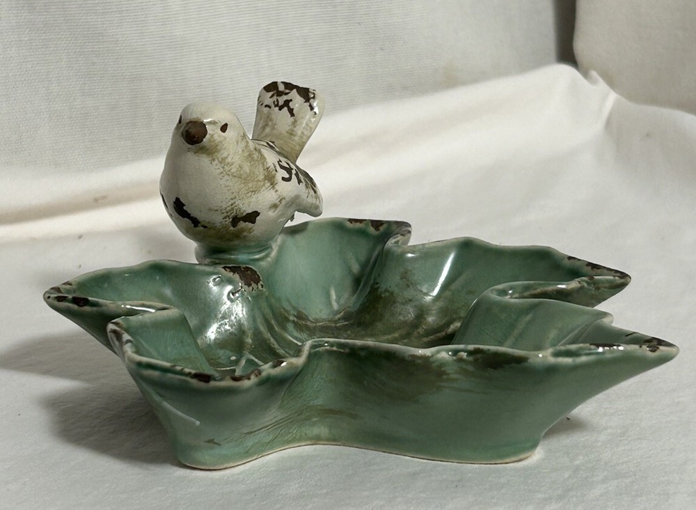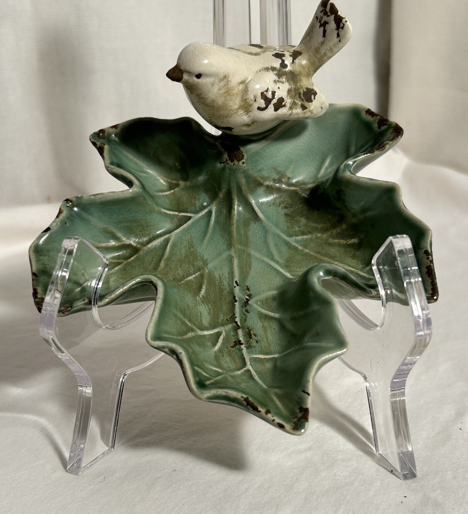 Add a touch of nature to your home decor with this beautiful Creative Co-Op porcelain figurine. The intricate details of the bird and maple leaf pattern make it a perfect addition to any room. The glossy finish and medium size make it a versatile piece that fits seamlessly into any décor. Whether you're looking for a gift for a loved one or simply want to treat yourself, this home decor piece is sure to impress. 5”x5”x3”