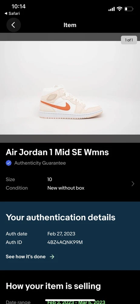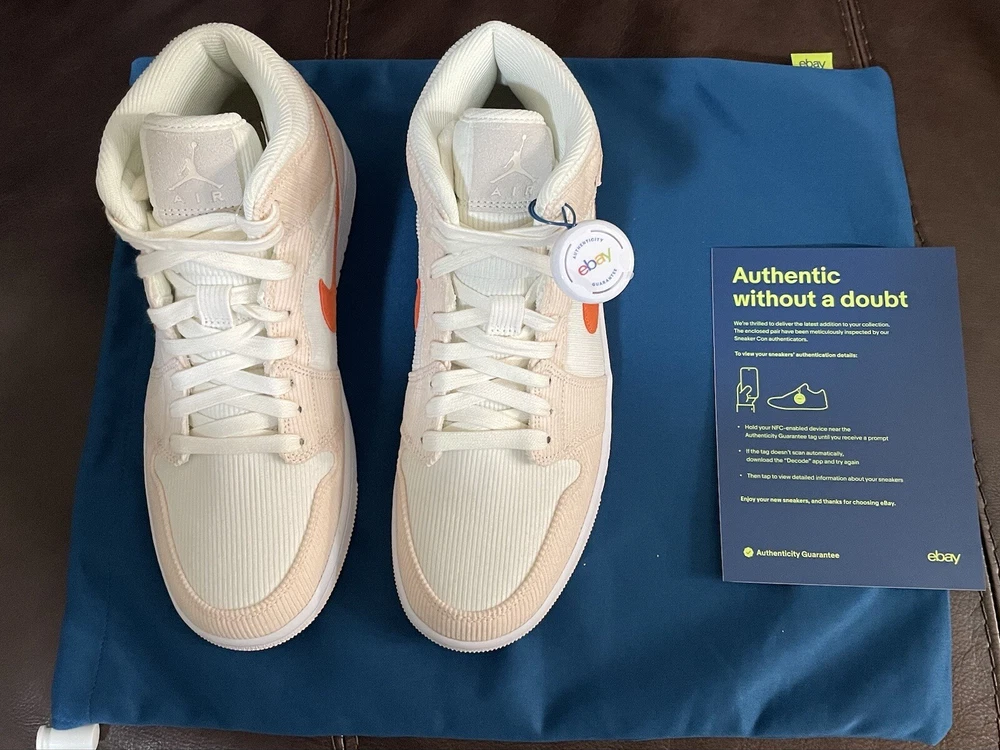 New without original box. Has been authenticated by eBay. Accidentally bought the wrong size. Includes tag, card, and bag from eBay. New Jordan 1 Mid SE Corduroy Sail Pink Size US Women’s 10/8.5M DA80...