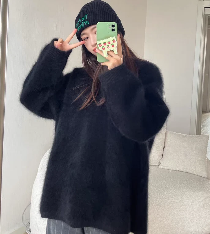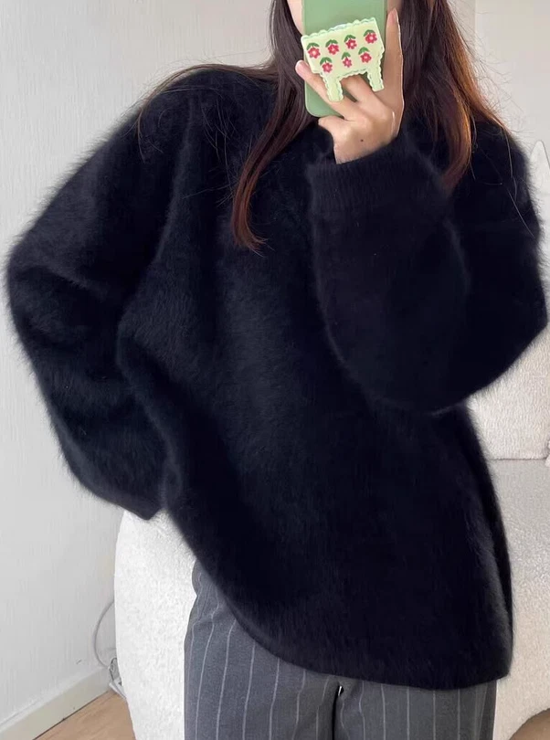 This sweater is so soft and luxurious—the mink velvet feels amazing against the skin! The loose fit is super comfortable, and the mid-length style makes it easy to pair with jeans or leggings. Perfect for staying cozy while looking stylish. Love the elegant look and how warm it keeps me. Definitely worth it!