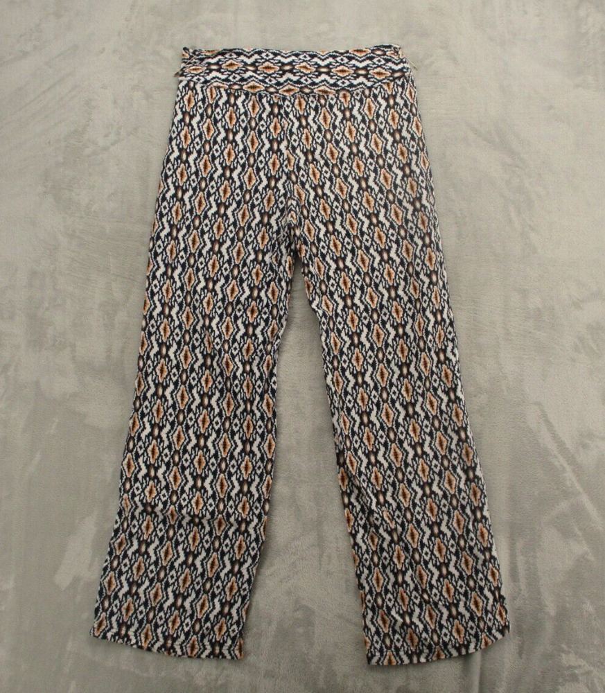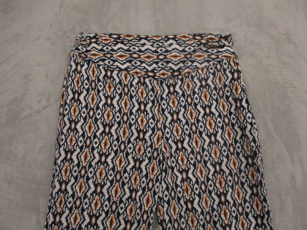 New Look Wide Leg Summer Lightweight Pants Women's Large Slim Fit White Blue Orange Geometric Pattern Mid-Rise Side Zipper Rayon . This item is used and may show some general wear from use. We sell items in good quality condition. No holes, stains, rips, or tears. Verify the sizing for a proper fit. Please refer to the photos for more details. Measurements Waist: 28" Front Rise: 10" Hips: 17" Leg Opening: 9" Inseam: 28" We are a small business located in the State of Michigan, In the United States We offer 60 Day Returns on all items with Free Return Shipping Photographic Lighting may affect variations in the appearance of item photos Please Check the Sizing on all clothing items before purchasing You Can Not combine coupons with offers. Combined Shipping discounts are automatic in your cart at checkout.