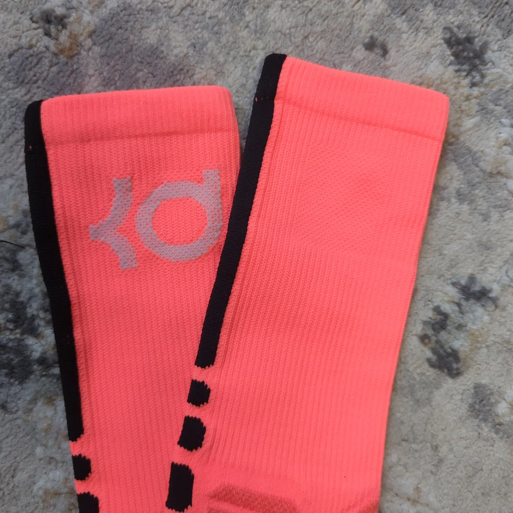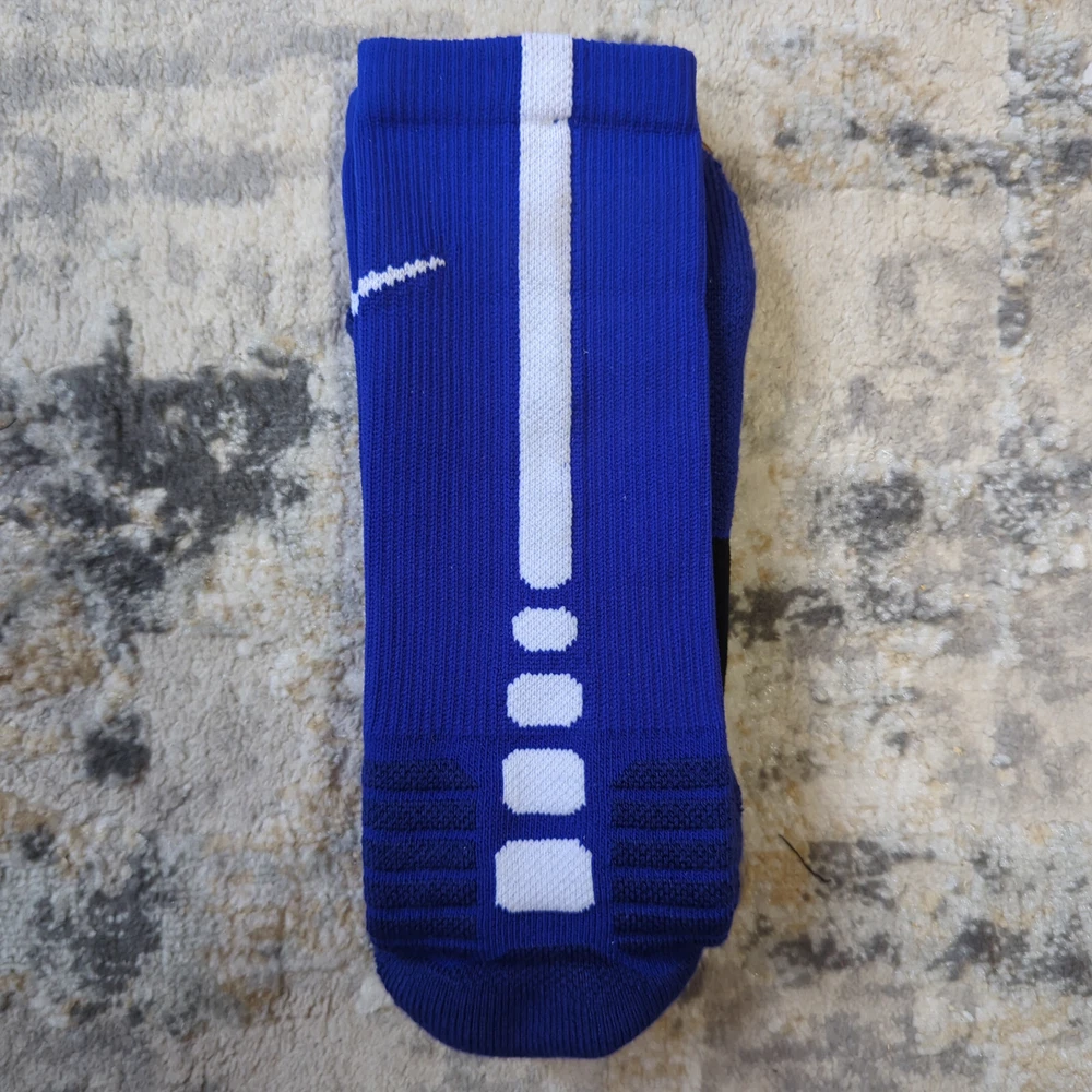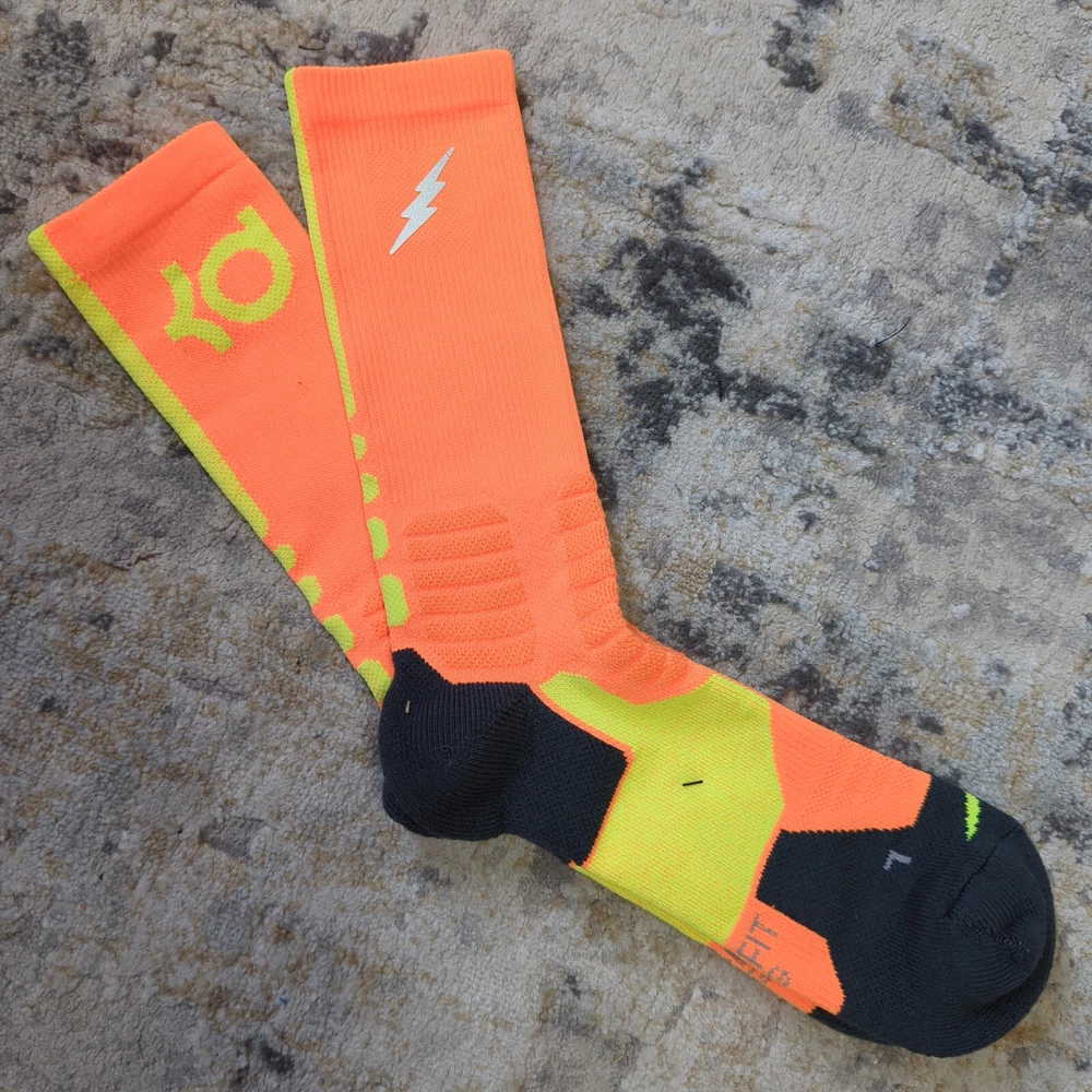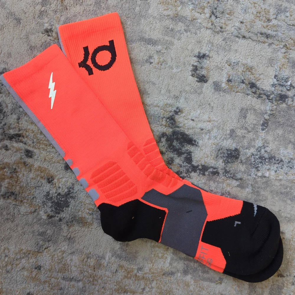 Nike Hyper Elite Crew Socks Size Large Brand new without tags Please note, most of the KD socks are missing the inside lightning bolt on either one or both socks 100% Authentic Fast Shipping: Ships in 1-2 business days from Illinois Many colors available, check out my page to see them all Message me with any questions The Nike Elite Basketball Crew Socks feature Dri-Fit fabric that keeps your feet cool and comfortable. It’s made for durability and offers a supportive and snug fit. The Nike Elite Basketball Crew Sock is a must own for any basketball player. Perfect for basketball, volleyball, and other sports Pair different colorways with your Kobe's, Lebron's, KD's and more. Performance basketball crew socks deliver superior fit and comfort. Strategically placed cushioning absorbs impact Dri-Fit technology helps keep feet feeling dry and comfortable. Left/right anatomical design for targeted comfort. Ventilation zones promote breath-ability to keep you cool 63% polyester, 18% nylon, 16% cotton, 3% spandex Size Guide Small: Youth 4-6 Medium: Men's 6-8 Large: Men's 8-12 Extra Large: Men's 12-15