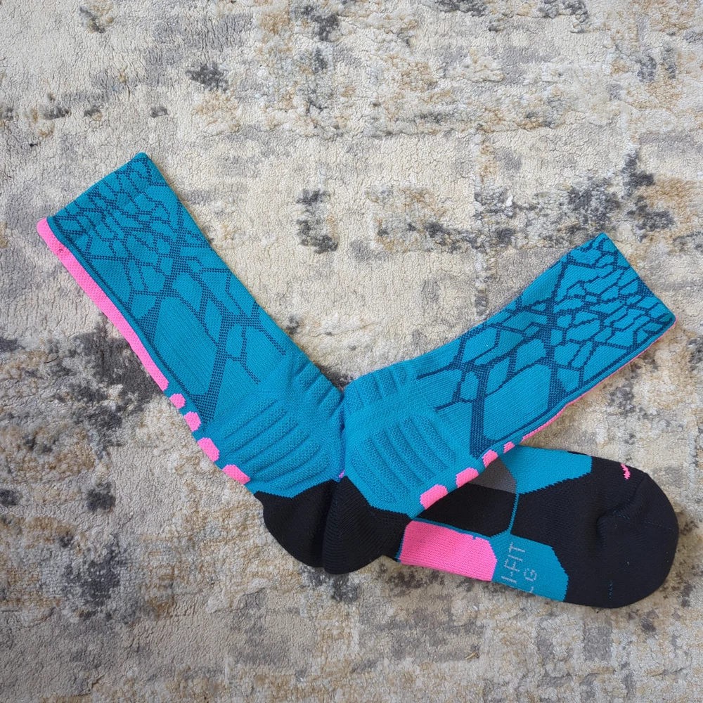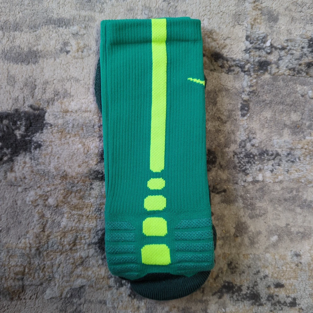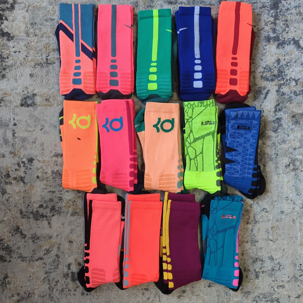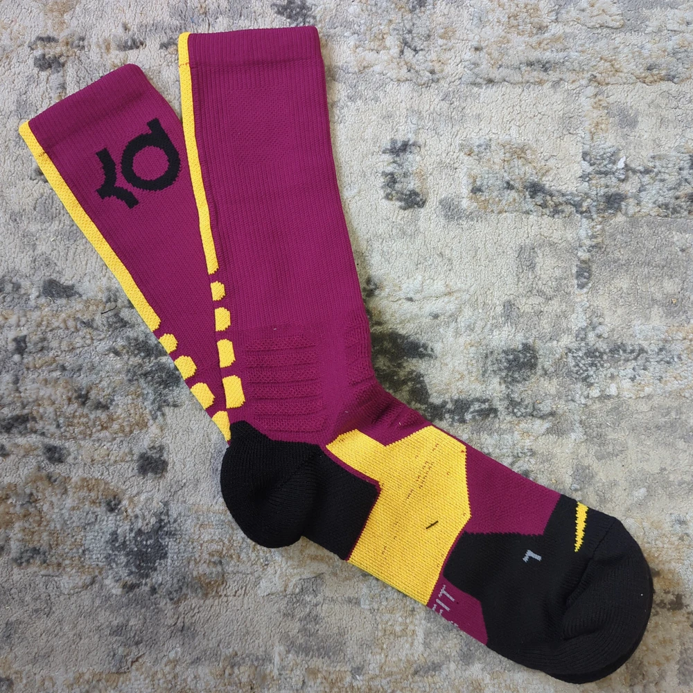Nike Hyper Elite Crew Socks Size Large Brand new without tags Please note, most of the KD socks are missing the inside lightning bolt on either one or both socks 100% Authentic Fast Shipping: Ships in 1-2 business days from Illinois Many colors available, check out my page to see them all Message me with any questions The Nike Elite Basketball Crew Socks feature Dri-Fit fabric that keeps your feet cool and comfortable. It’s made for durability and offers a supportive and snug fit. The Nike Elite Basketball Crew Sock is a must own for any basketball player. Perfect for basketball, volleyball, and other sports Pair different colorways with your Kobe's, Lebron's, KD's and more. Performance basketball crew socks deliver superior fit and comfort. Strategically placed cushioning absorbs impact Dri-Fit technology helps keep feet feeling dry and comfortable. Left/right anatomical design for targeted comfort. Ventilation zones promote breath-ability to keep you cool 63% polyester, 18% nylon, 16% cotton, 3% spandex Size Guide Small: Youth 4-6 Medium: Men's 6-8 Large: Men's 8-12 Extra Large: Men's 12-15