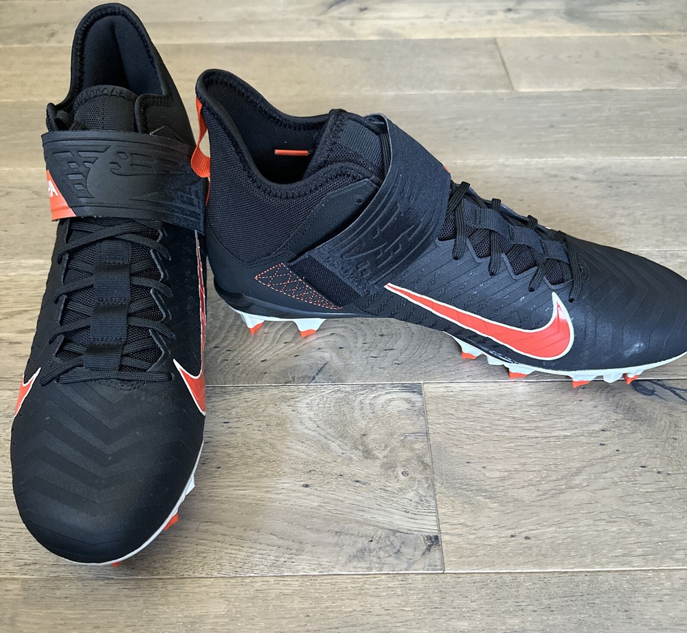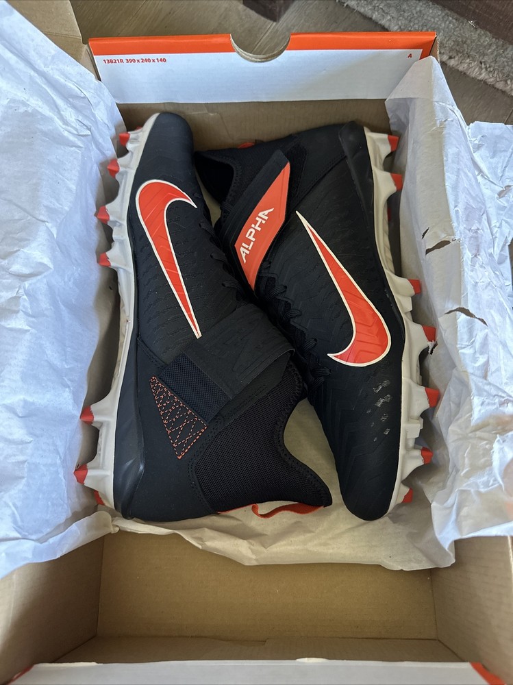 New Nike Mens Alpha Menace Pro 2 Mid SMU P Black Orange stripe-swoosh Sz 12.5- Football Cleats. Mid ankle. Division 1 team issued Oregon state clear. Excellent!! Box might have some dents. See pics fo...