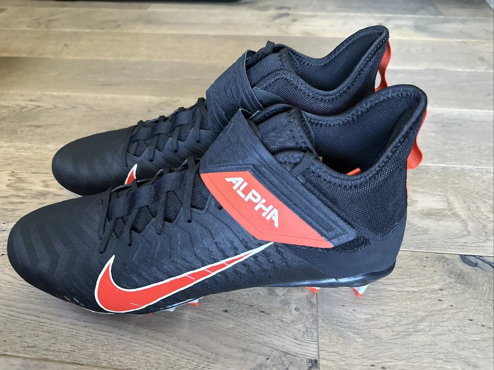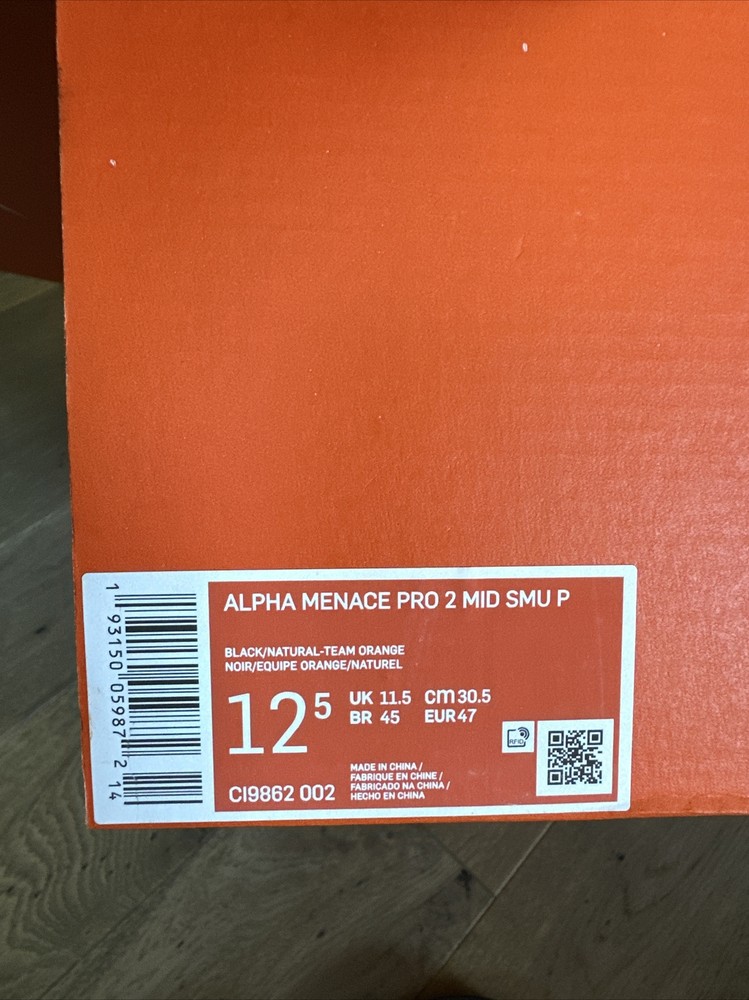 New Nike Mens Alpha Menace Pro 2 Mid SMU P Black Orange stripe-swoosh Sz 12.5- Football Cleats. Mid ankle. Division 1 team issued Oregon state clear. Excellent!! Box might have some dents. See pics for specific condition. C19862 002