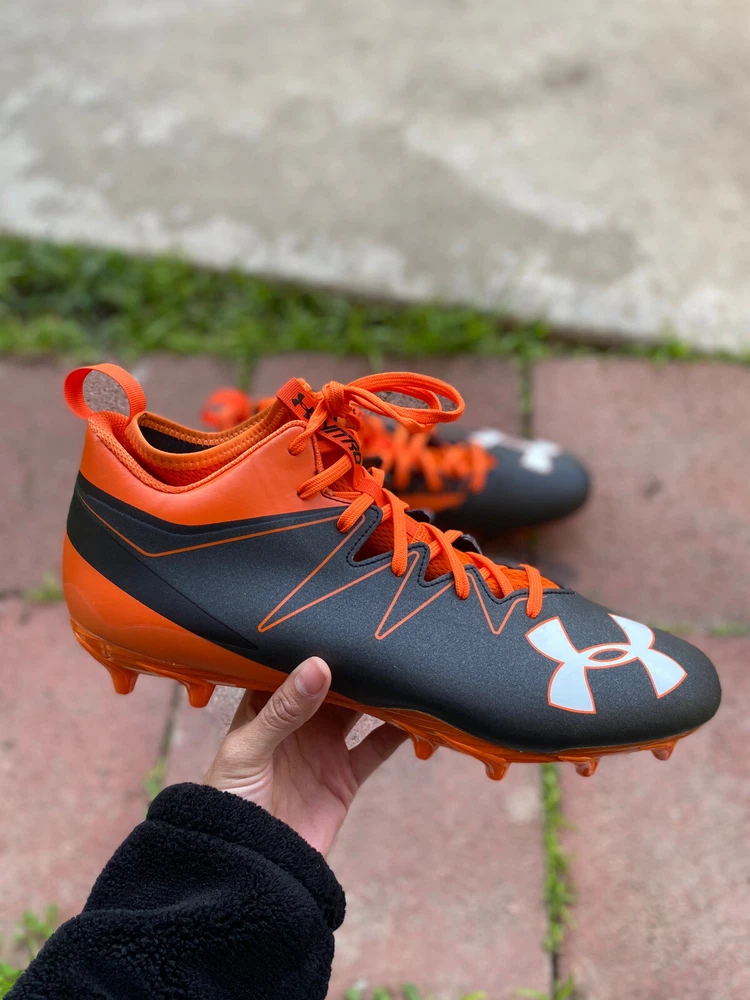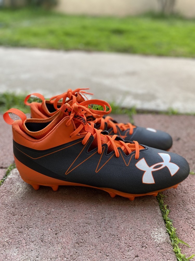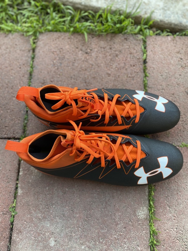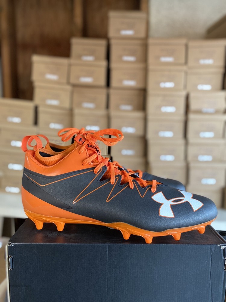 New Under Armour Nitro Mid Black Orange Football Cleats 1290962 004 Mens Size 14.