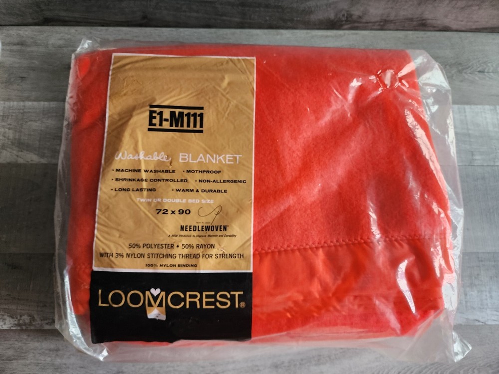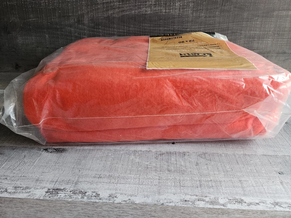 New Vintage Loomcrest Orange Blanket MCM Rayon Blend E1-M111 72"x90" USA HTF.