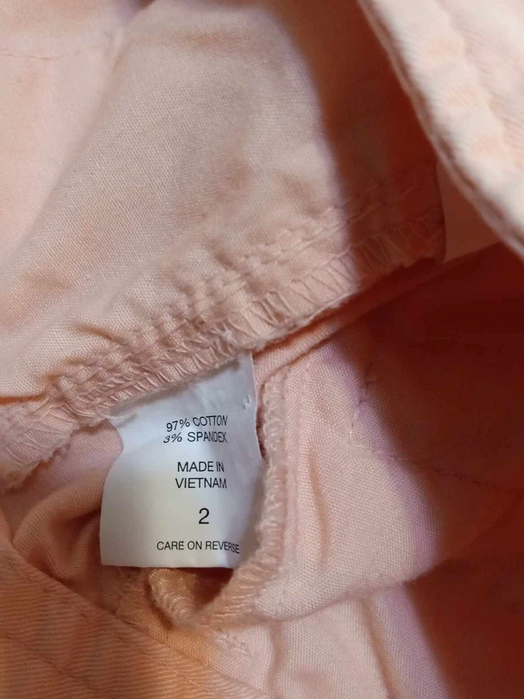 Elevate your summer wardrobe with these stylish New York & Company chino shorts in a beautiful peach color. Designed for women, these shorts feature a mid-rise fit and are made with a comfortable blend of spandex and cotton materials. The size is regular and fits a size 2. Perfect for any occasion, these shorts are a must-have for any fashion-forward woman. The chino style offers a classic and timeless look that will never go out of style. Add a pop of color to your outfit with these orange shorts and make a statement this summer.