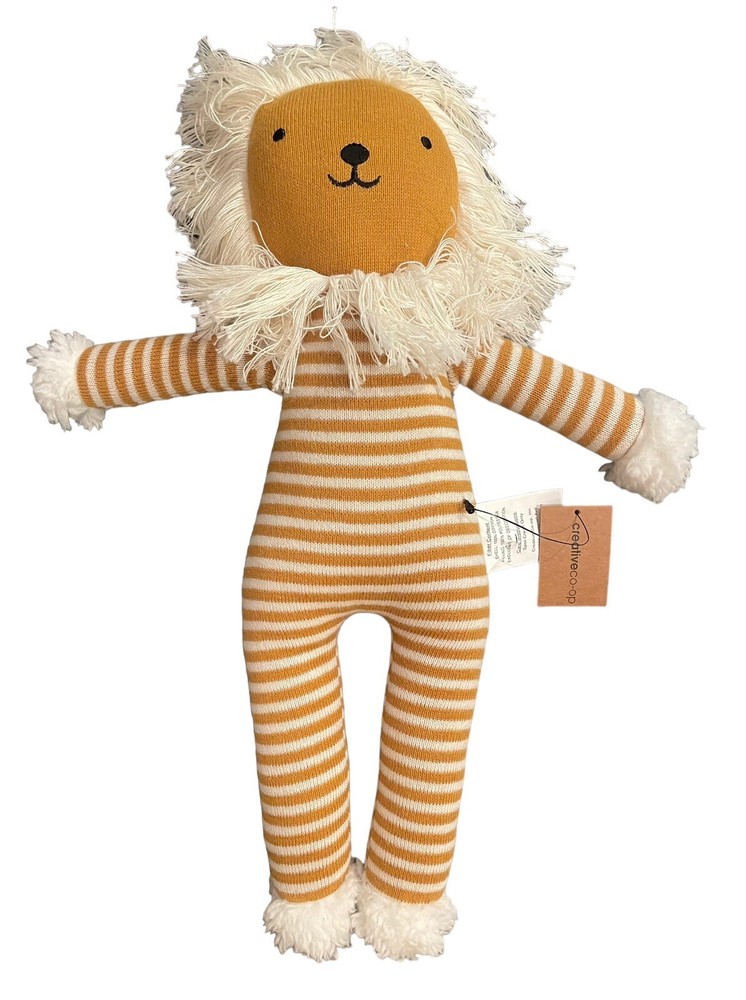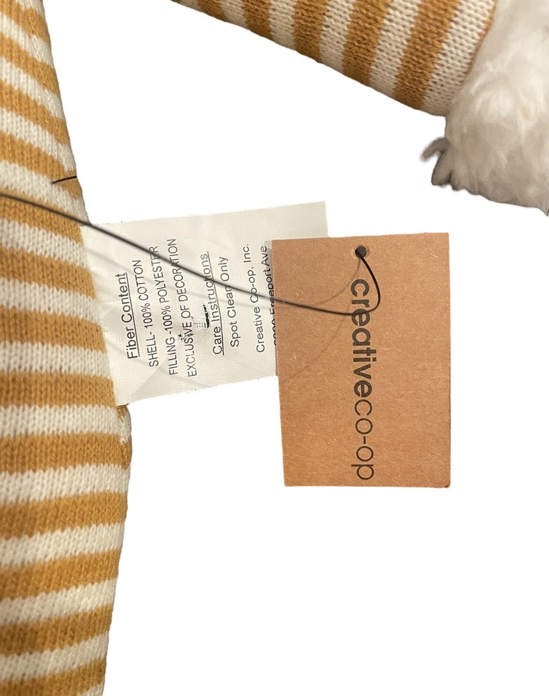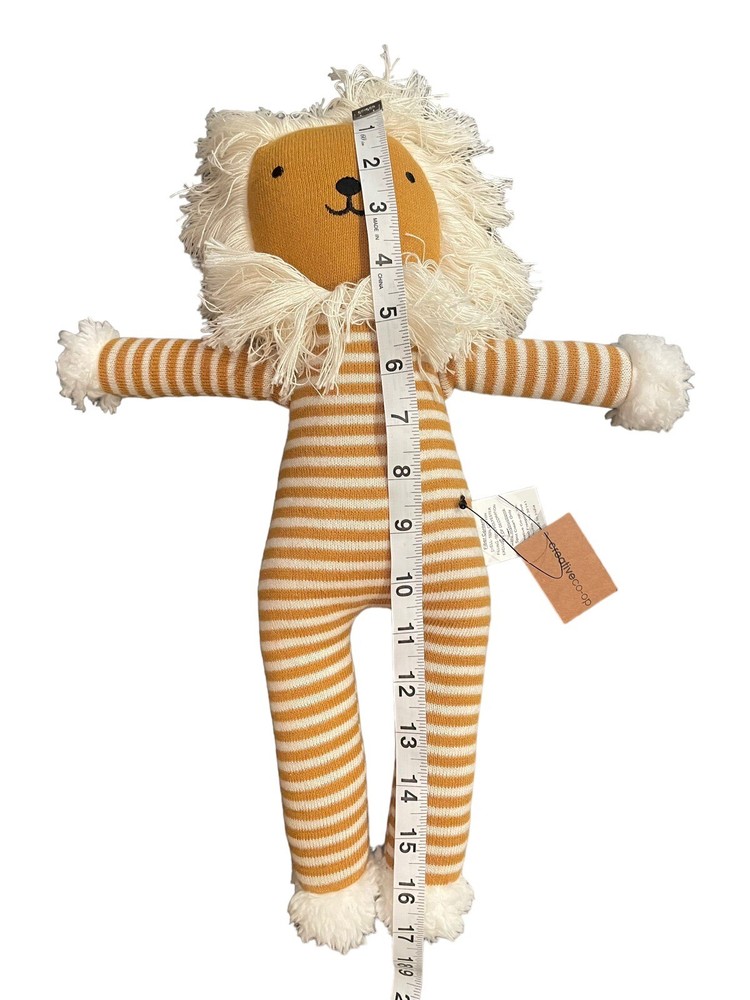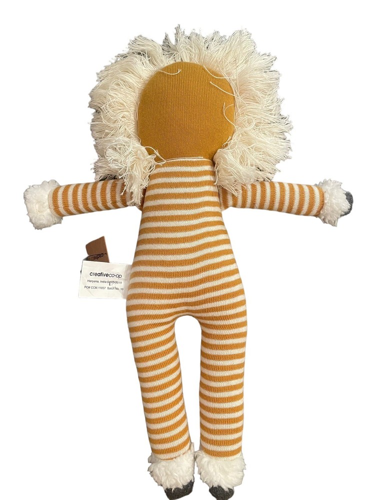 New w/ Tags Creative Co-Op Plush Cotton Knit Lion with Orange Stripes. Condition is New. Shipped with USPS Ground Advantage.