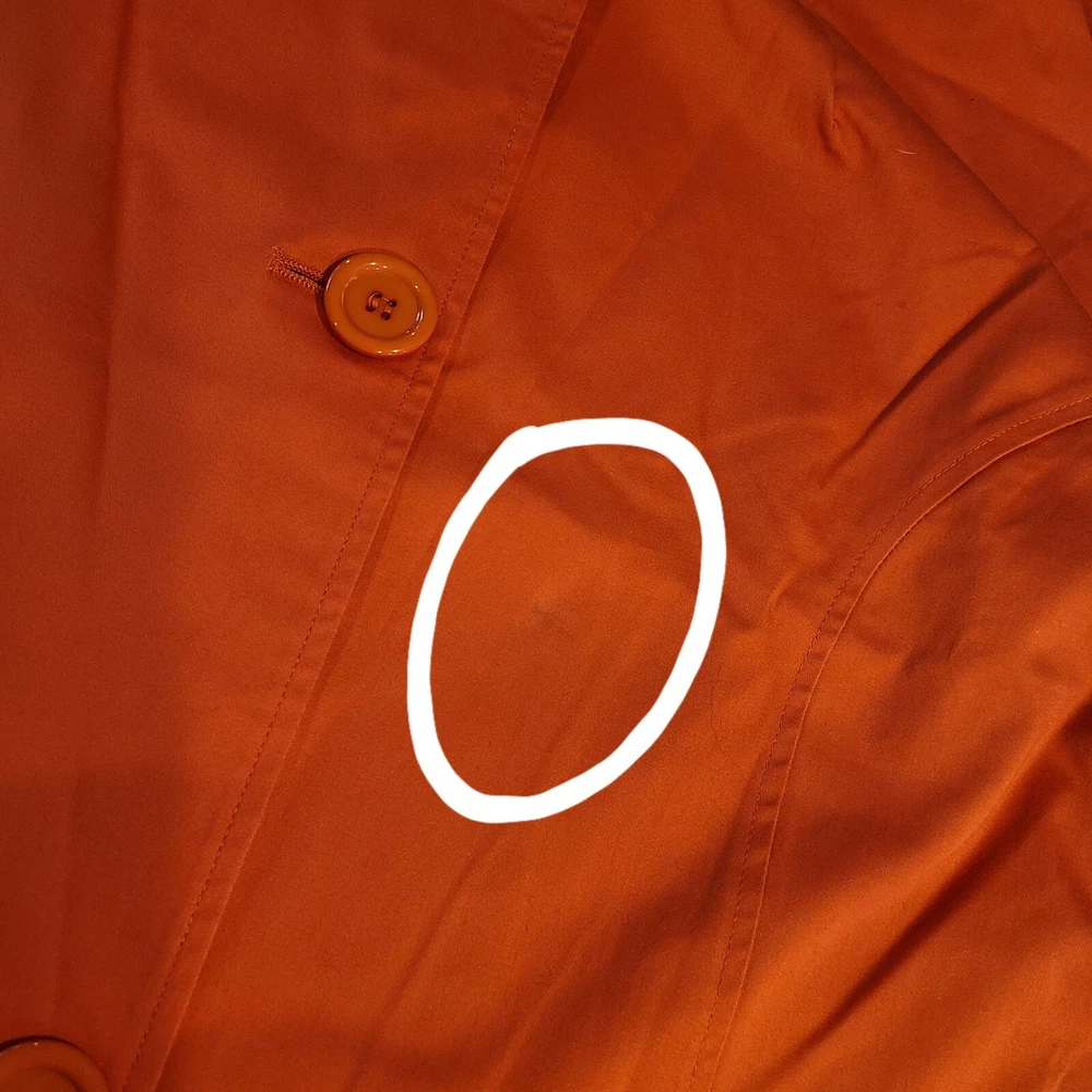 Love this blazer! The orange lining adds a fun pop, and the mid-length cut is perfect for work or casual wear. It's in great condition—just a tiny mark on the front (shown in the pic). Super stylish and ready to elevate any outfit!
