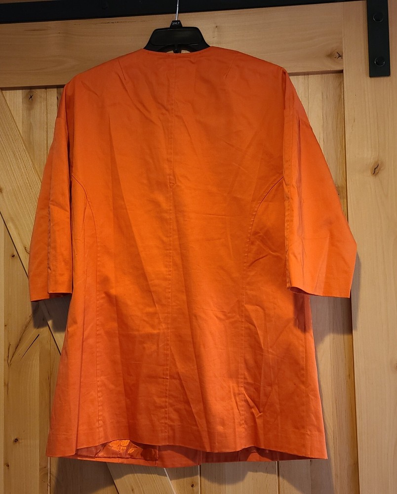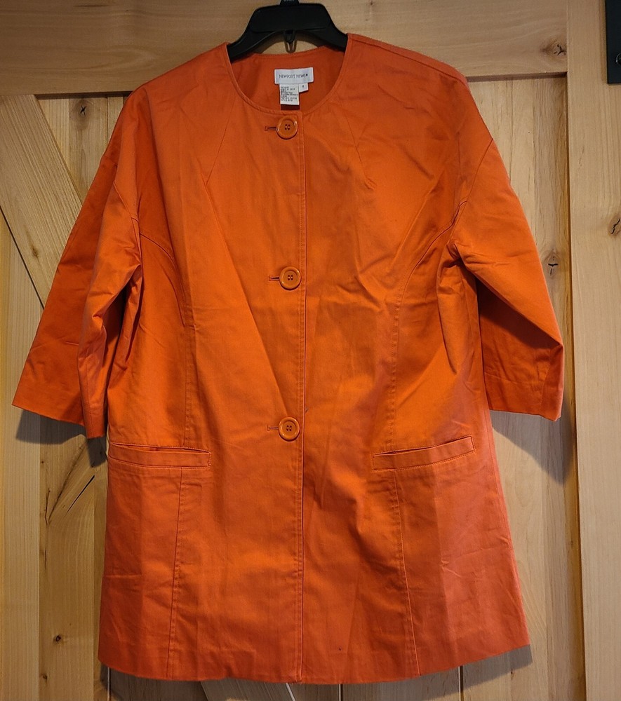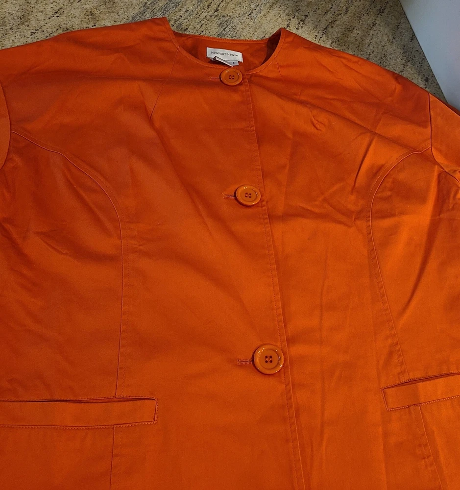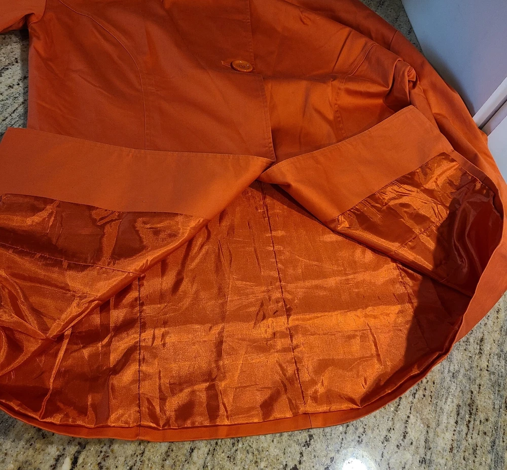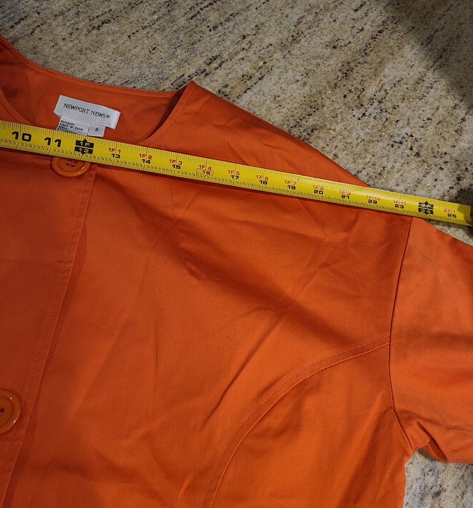 Newport News Women Size 8 Orange Lined Career Work Casual Blazer Jacket Mid Length Good condition. Mark on the front ~ circled in photo. Jacket is sealed upon completion of photos...