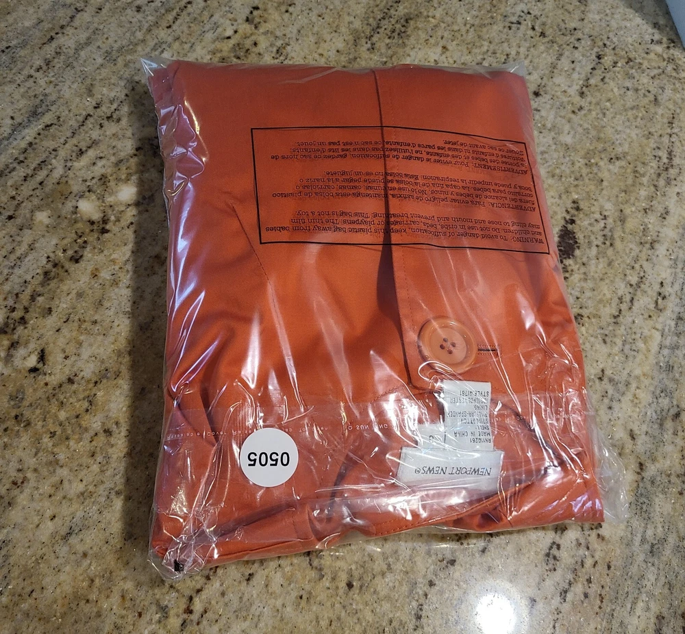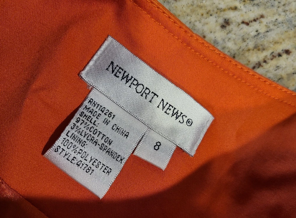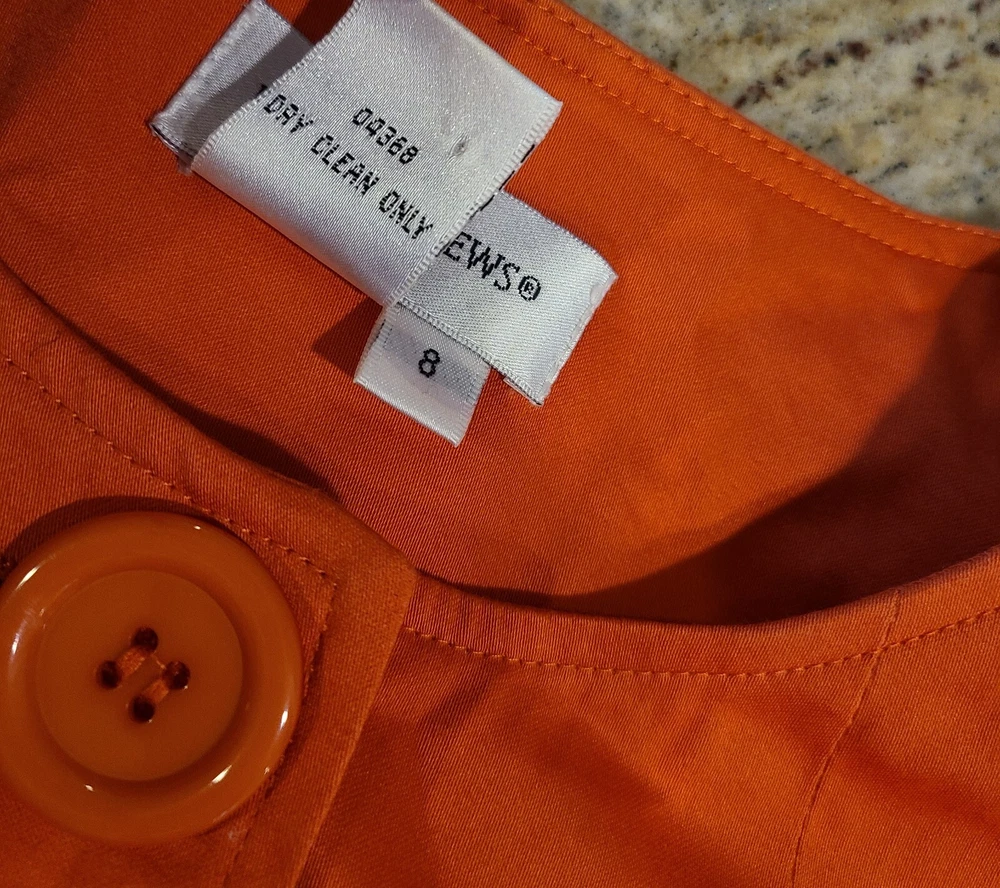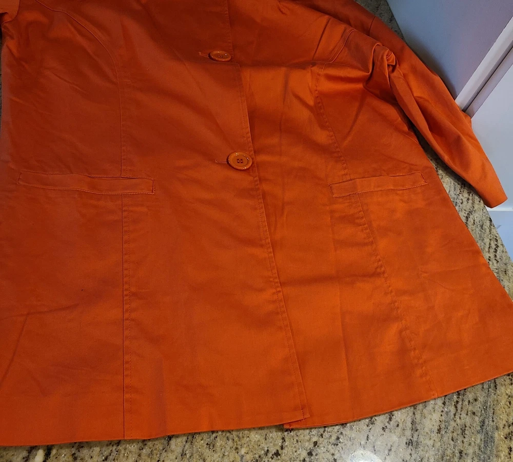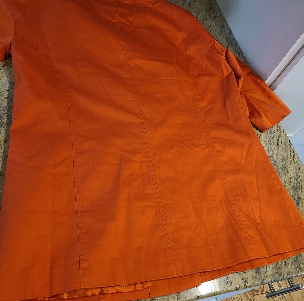 Newport News Women Size 8 Orange Lined Career Work Casual Blazer Jacket Mid Length Good condition. Mark on the front ~ circled in photo. Jacket is sealed upon completion of photos...