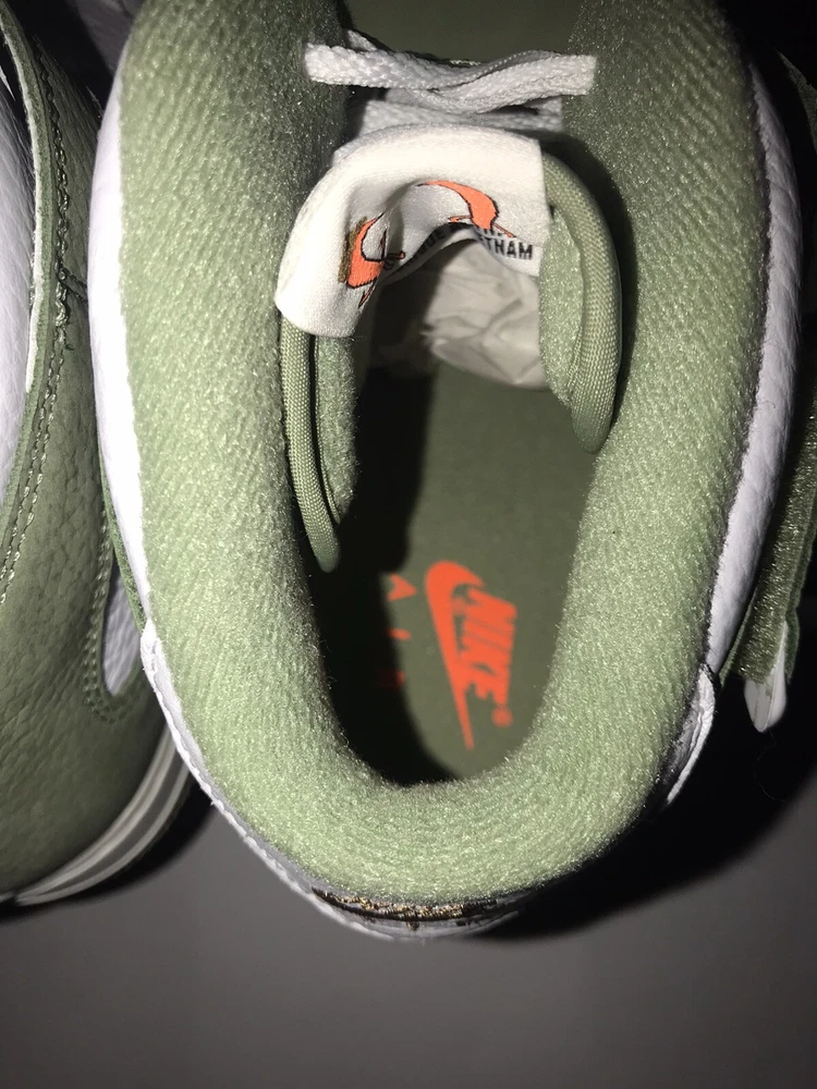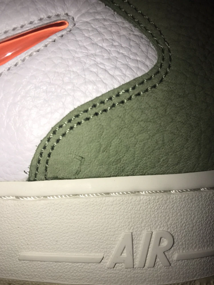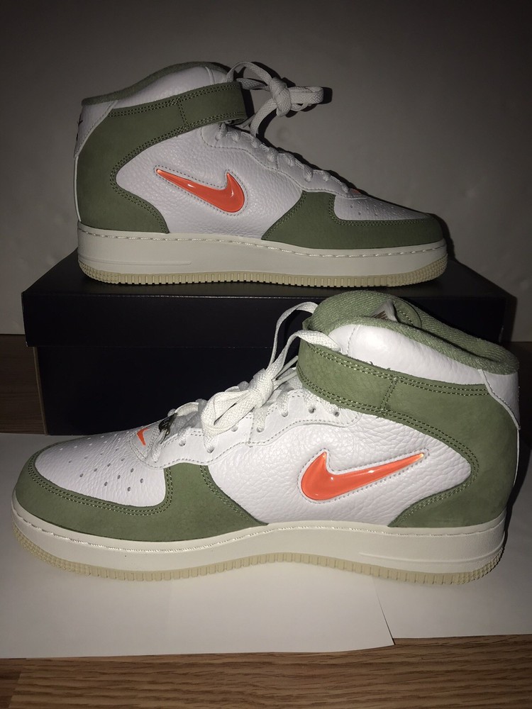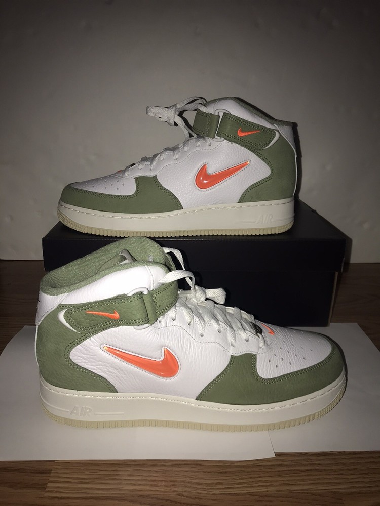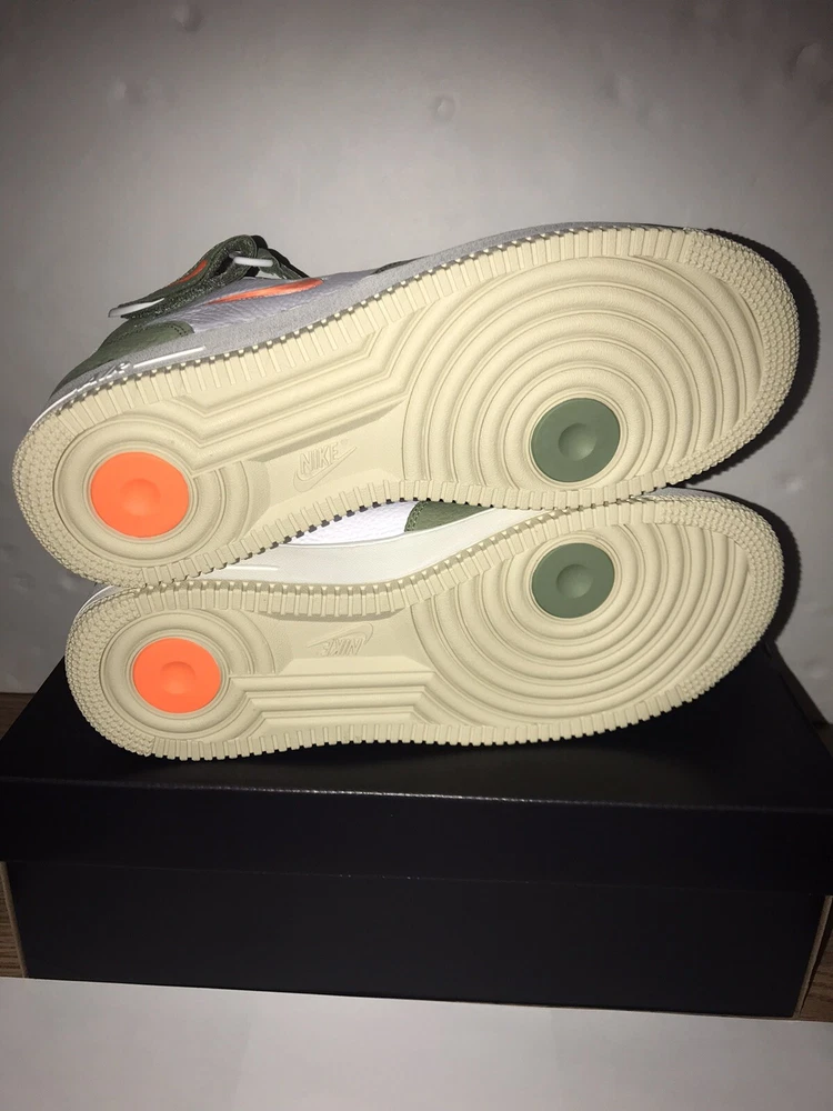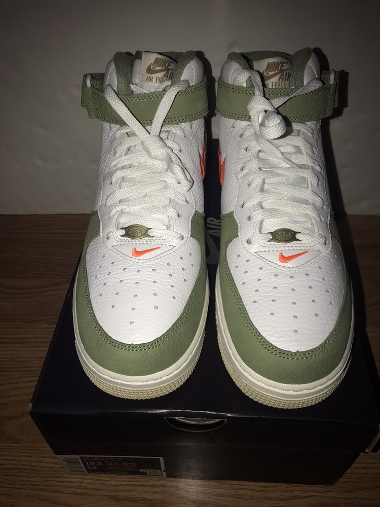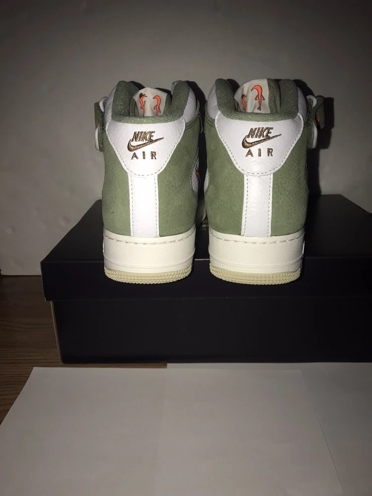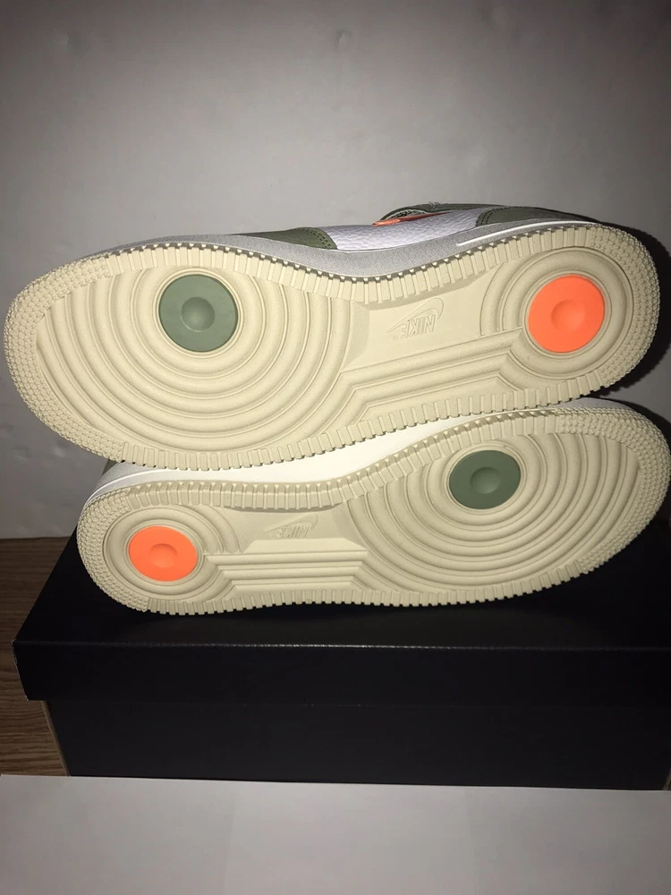 Nike Air Force 1 Mid QS Jewel Oil Green Size Men 10.5 comes with box "Top Of Box has a small dent “DQ3505-100 AUTHENTIC NEW. Deadstock Factory defects on both pairs, bottom of soles, glue residue look at all photos. Carefully before buying .