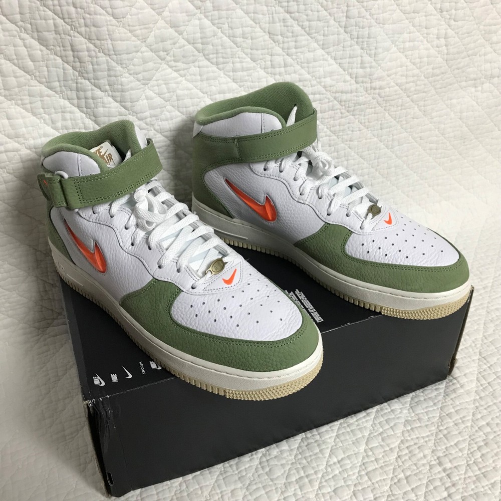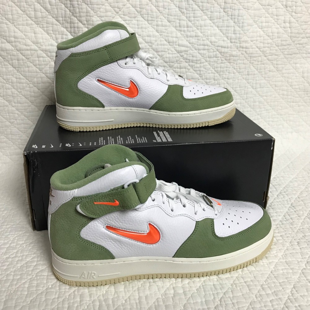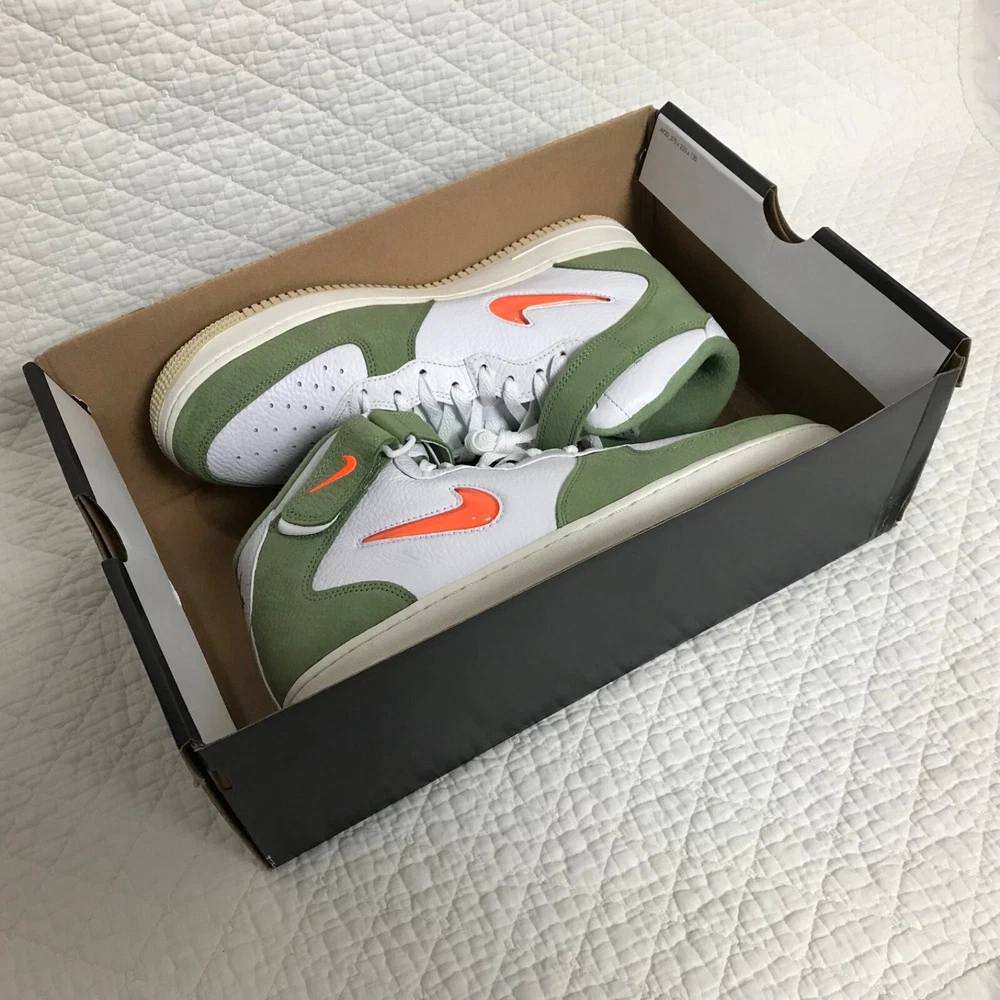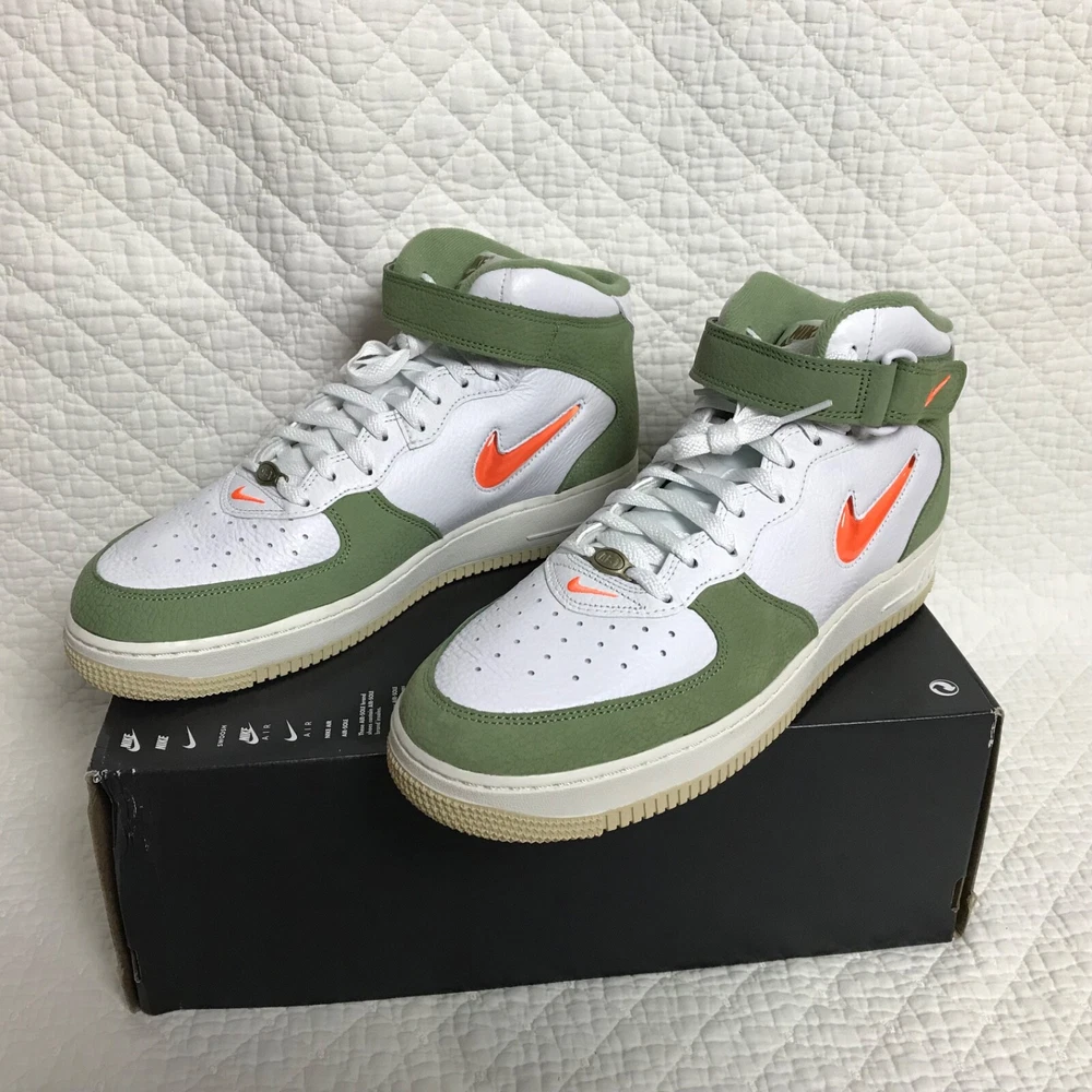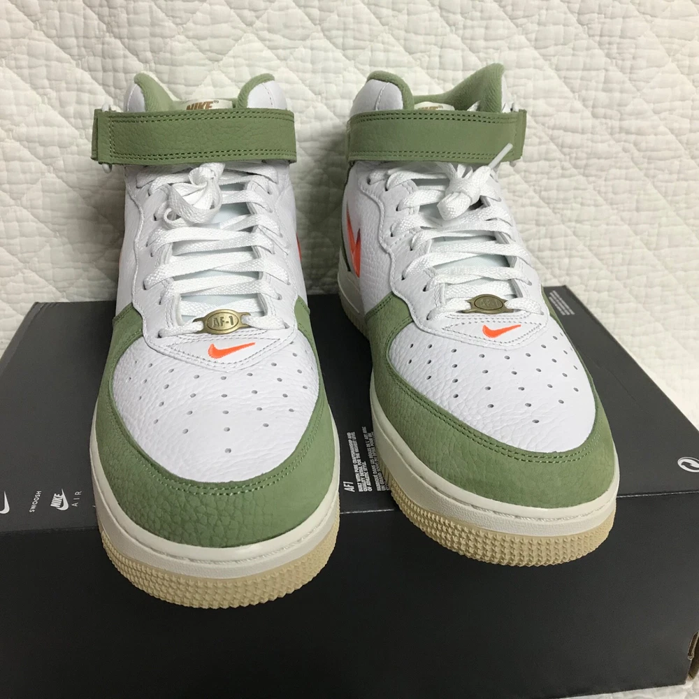 Nike Air Force 1 Mid QS Shoes Men’s SZ 11.5 Women’s SZ 13 White Total Orange DQ3505-100 NWOB The shoes are new without box.Take a look at the pictures for details. Taking on a full tumbled leather construction all throughout the upper, this Nike Air Force 1 Mid starts off with White on the side panels, toe, and ankle collar. For contrast we see olive landing on the overlays on the midfoot and ankle as well as on the inner liner. For more color we see the addition of orange on the jewel Swooshes on the side panels, the embroidered Swooshes on the ankle strap and toe, and brown on the branding that appears on the tongues and heels. An off-white rubber midsole and a beige rubber outsole finish off this Nike Air Force 1 Mid
