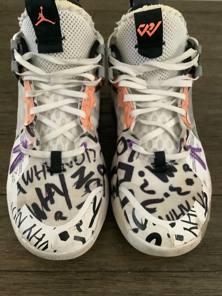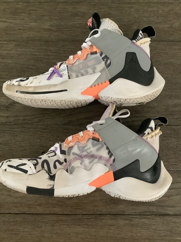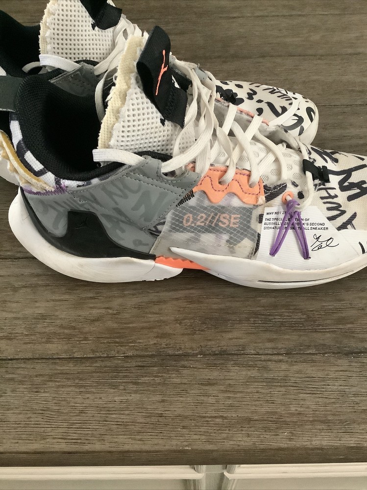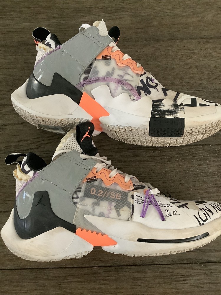 Nike Air JORDAN - Why Not Zero.2 SE - The special edition of Russell Westbrook’s second signature basketball sneaker. Mens Basketball Shoes White, orange, black, purple, yellow. SIZE 8 Model AQ3562-101. Excellent Condition